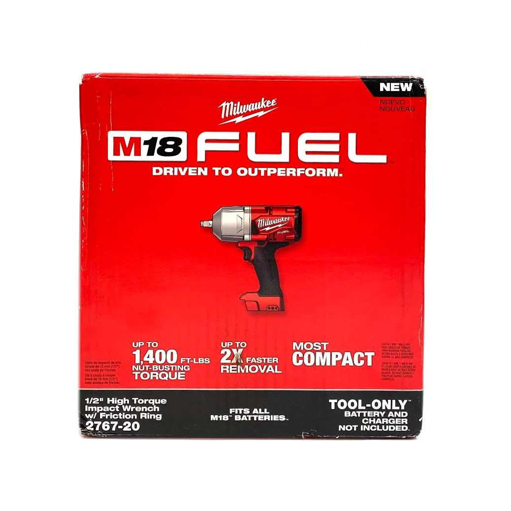 The 2767 Milwaukee M18 Fuel 1/2″ High Torque Impact Wrench with Friction Ring eliminates the need to use a pneumatic tool for those stubborn and rusted bolts by delivering 1 000 ft-lbs of fastening torque and 1400 ft-lbs of nut-busting torque. With 2X faster removal speed users will be able to get the job done faster and be more productive throughout their day. By providing the industrys most compact cordless High Torque Impact Wrench at 8.39 in length this tool allows for more access in tight spaces. 4-Mode Drive Control with Bolt Removal mode gives users the most control over their fasteners.šBolt Removal mode gives the user more control when removing fasteners by slowing to 750rpm once the fastener has been busted loose. This tool offers quick tool-free socket changes with a 1/2 in. friction ring anvil. A premium rubber overmold material gives you ultimate comfort during prolonged use while lasting longer against corrosive materials.