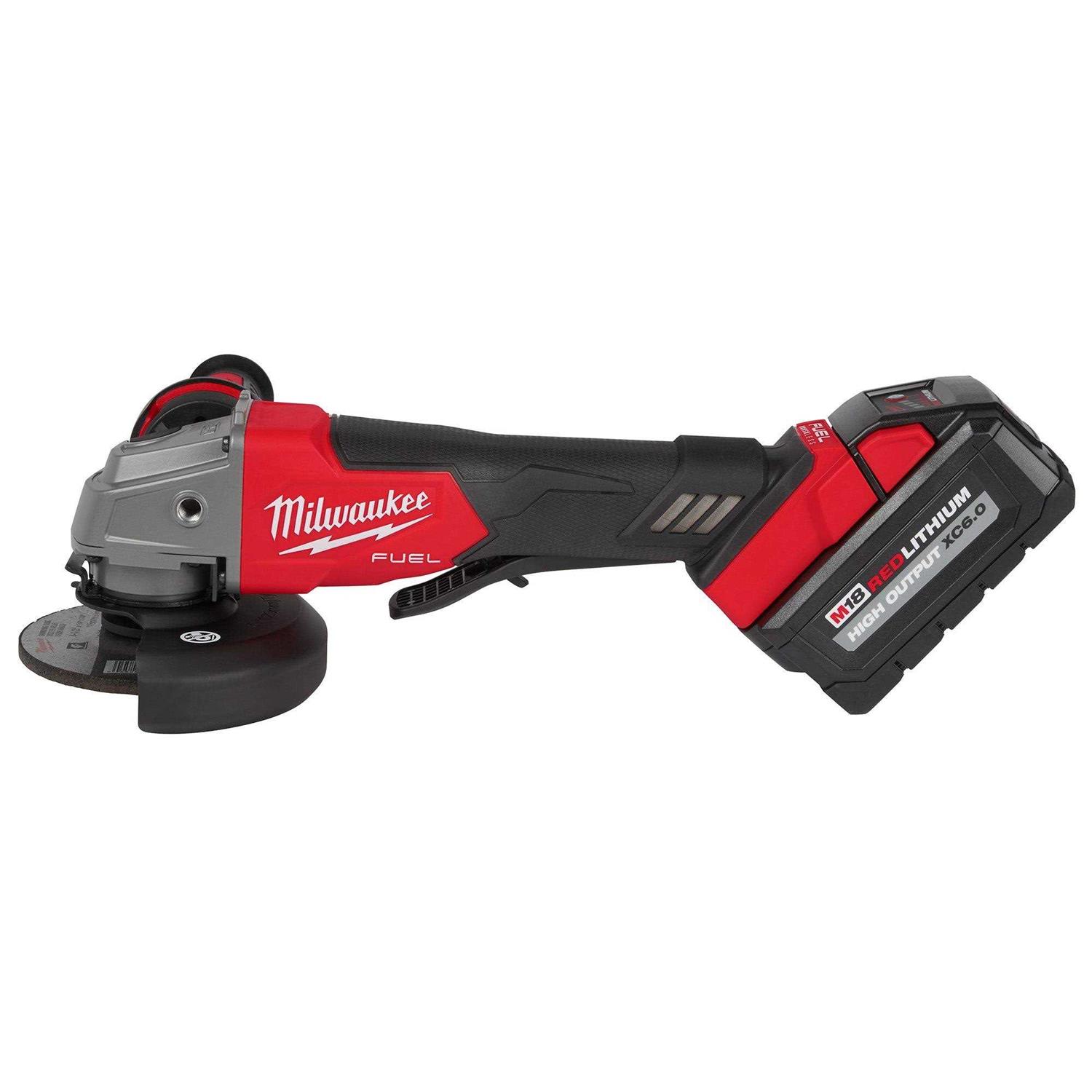M18 Fuel 4-1/2″ / 5″ grinder paddle switch, no-lock kit is the next advancement in power and performance, generating 11A corded power, fastest cutting, and delivering up to 135 cuts per charge. The M18 Fuel 4-1/2″ / 5″ grinder generates 11A corded power allowing us to complete the toughest grinding and cutting applications, all on the M18 cordless system. The POWERSTATE brushless motor delivers maximum sustained power and 8,500 RPM to remove material faster and increase productivity. REDLINK PLUS intelligence ensures unmatched levels of performance, protection, and compatibility. The M18 Fuel 4-1/2″ / 5″ grinder includes an electronic clutch for kickback protection, as well as overload protection to maximize motor life. The M18 REDLITHIUM High Output XC6.0 batteries deliver 50% more power while running 50% cooler than our M18 REDLITHIUM XC batteries and are compatible with 200+ tools in the M18 system. The Milwaukee M18 Fuel 4-1/2″ / 5″ grinder takes cordless grinders to the next level in performance and run-time.
