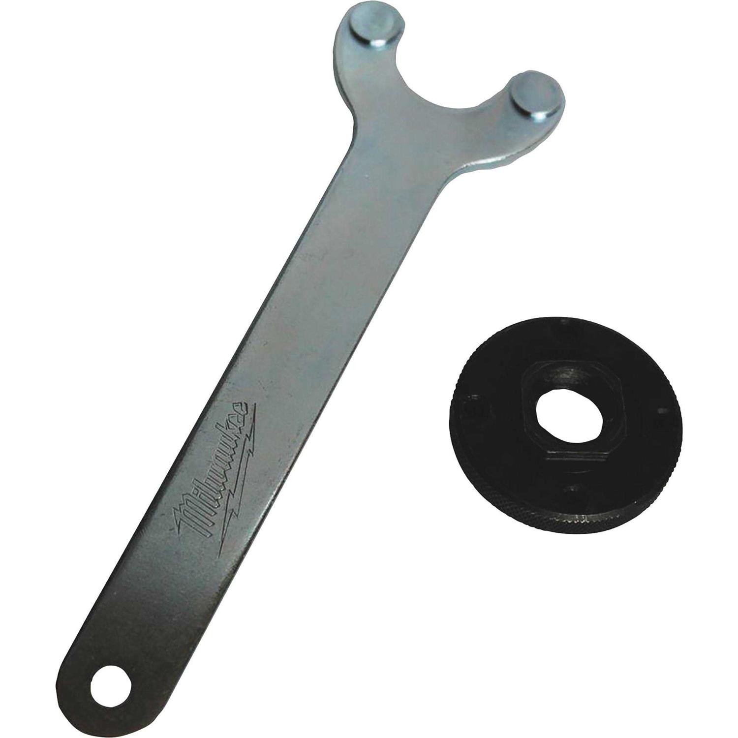 Return your handheld power grinder to its full operating capacity with this Grinder Flange Nut Kit from Milwaukee. The 5/8 in.-11 spindle flange nut fits most small angle grinders and includes a spanner wrench to securely tighten it to your tool.Great for general-purpose applicationsReplacement kit for Milwaukee small angle grindersIncludes a spanner wrench and spindle flange lock nut