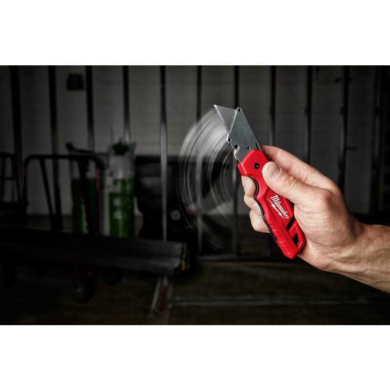 Both Milwaukee knives feature a press and flip mechanism for easy, one-handed opening. The utility knives allow for make quick, tool-free blade changes with a metal extension over the button prevents accidental blade removal for maximum efficiency. Both press and flip open utility knives have a durable wire belt clip to reduce pocket tearing. The FASTBACK Folding Utility Knife with Blade Storage has an integrated gut hook and wire stripper for increase versatility. The metal body on the FASTBACK Folding Utility Knife w/ Blade Storage provides durability and the onboard blade storage holds up to 5 extra blades. The small utility knife is compact for easy storage.