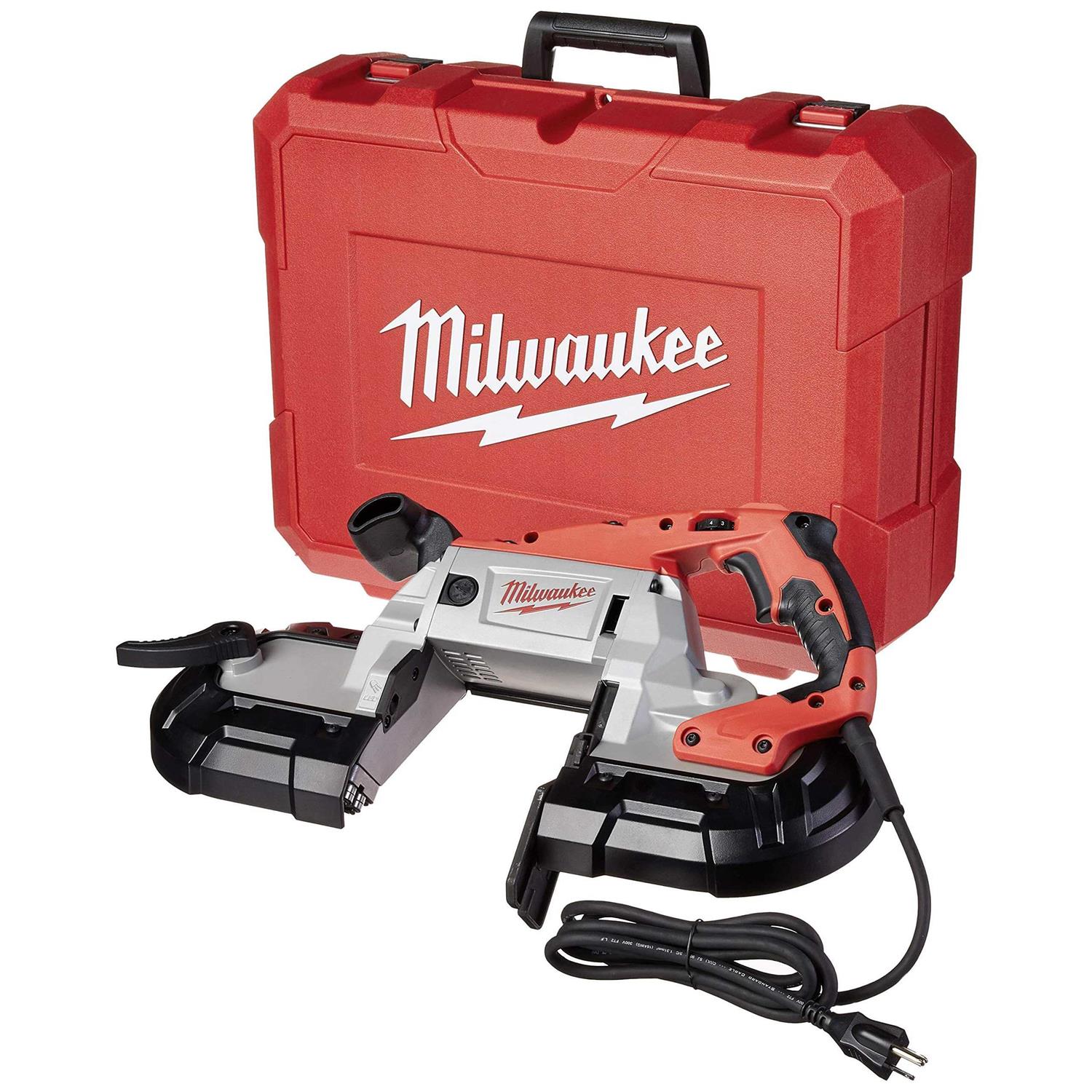 The new Deep Cut Band Saws deliver 2X more durability best-in-class power at 11 Amps revolutionary cut visibility and the industrys largest cut capacity at 5″ by 5″. These Band Saws still deliver on the heritage of long-term reliability and performance that make Milwaukee Band Saws the standard in industrial metalworking but now feature a new exclusive Job Site Armor Technology and all metal direct drive system that provide game-changing durability. The Job Site Armor Technology is made of a proprietary composite material and has crush zone barriers that provide long lasting rugged protection. The all metal direct drive gearing system delivers maximum tool life while requiring less servicing than a chain drive. In addition a gear protecting clutch extends gear and motor life by absorbing high impact forces caused by blade lock-ups and a new debris protection system delivers longer pulley life by removing debris during use. The new Band Saw’s slimmer motor housing increases user line of site delivering superior cut accuracy and revolutionary cut visibility while a new balanced body design allows tool to rest naturally and comfortably in the users hands. At 14.5 Lbs. this lighter weight design delivers more control over the tool and less fatigue at the conclusion of the work day. Another innovative feature is the tool-free locking adjustable shoe which is a button actuated tool-free design that allows the user to quickly adjust from an extended shoe to no shoe in seconds. Band Saw Blade Sold Separately.