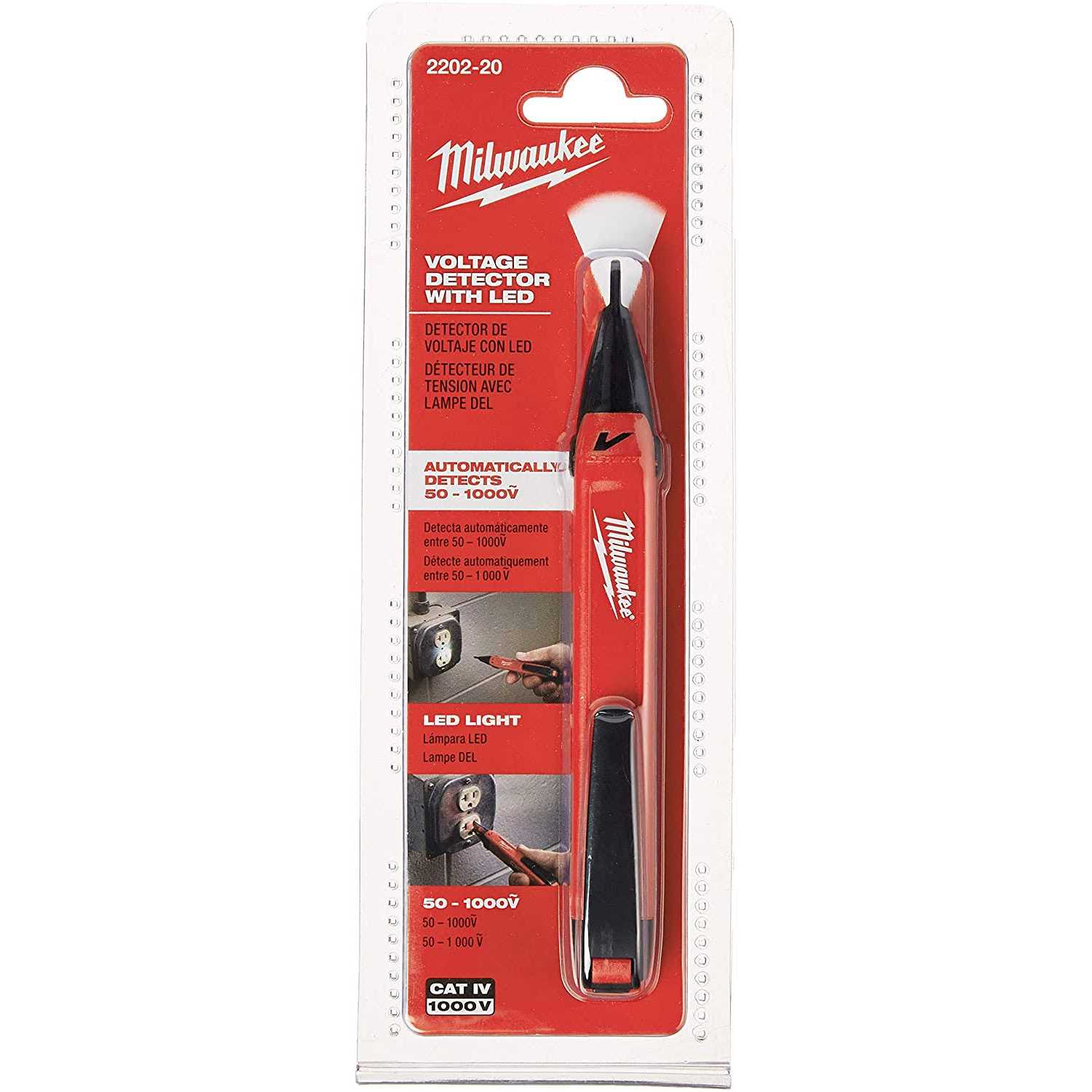 The Milwaukee Non-Contact Voltage Detector with LED Light (2202-20) is used for residential, commercial and industrial applications. The 2202-20 can detect between 50 and 1000V AC and has an industry leading safety rating of CAT IV 1000V. With a built in bright LED work light, the 2202-20 is two tools in one. The durable tip allows for easy checking of power outlets. The 2202-20 is also designed with a green “Power On” indicator light so you know the voltage detector is working properly before use.