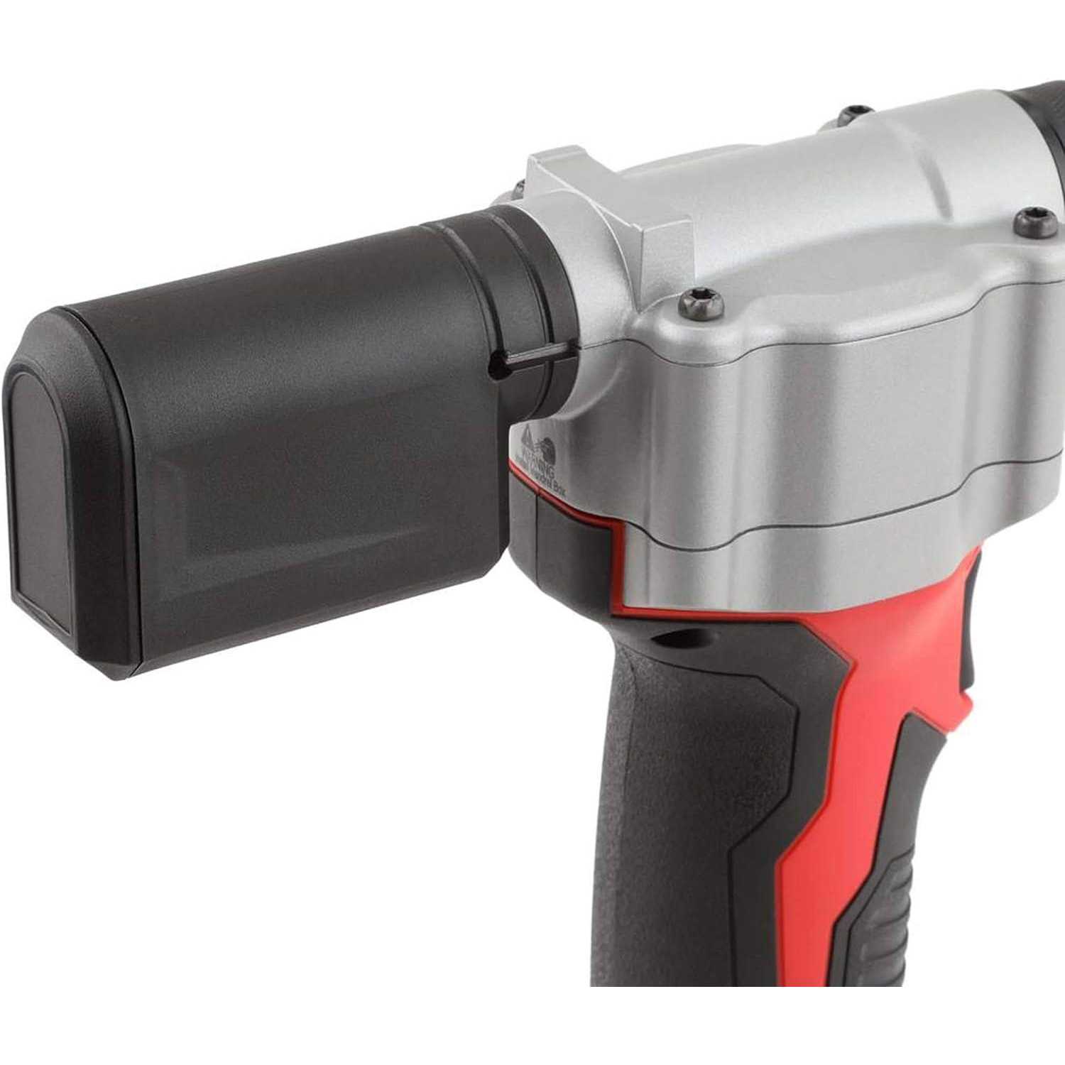 Pulls force The M12 rivet tool is the first cordless solution that delivers fast, easy riveting while maintaining performance, durability, and size. The 2550-20 can pull up to 3/16″ stainless steel rivets, 450 1/8” steel rivets on one 1.5 a/Hr. Charge, and reduces muscle effort from a hand tool by over 60%. No compressors or hoses during set up and operation makes this tool a great replacement to pneumatic products. 2x longer life over current cordless solutions delivers greater durability from common jobsite conditions and use. This is the most compact cordless rivet tool on the market, measuring only 6.5&Rdquo; in length allowing users more access in tight spaces.