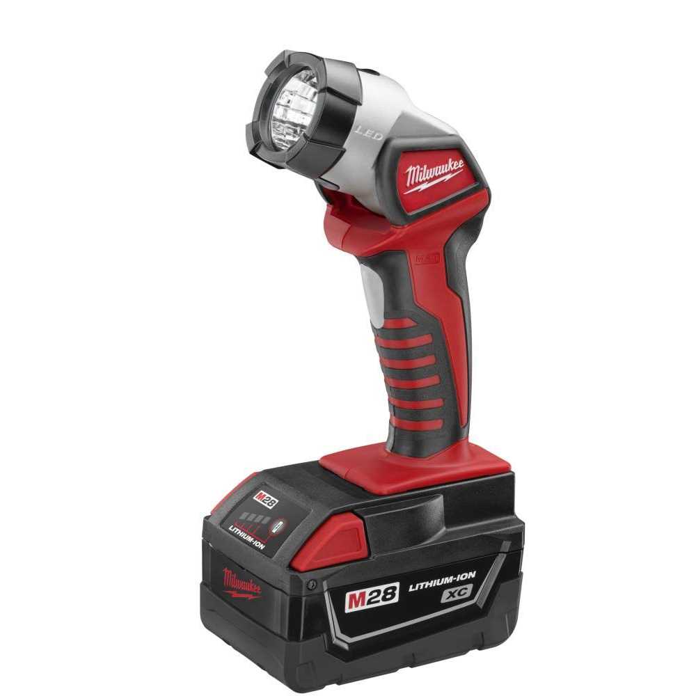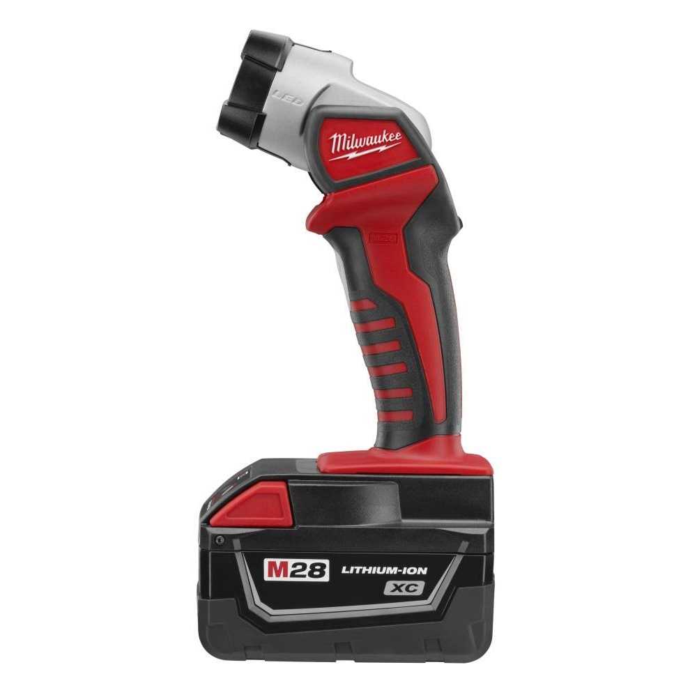 The Milwaukee M28 cordless LED work light lasts 600X longer than conventional incandescent bulbs. Powered by the M28 lithium-ion battery it runs up to 4X longer on a single charge. Its 135 rotating head allows you to easily direct the light beam at the desired work area while its integrated hook enables hands-free use.