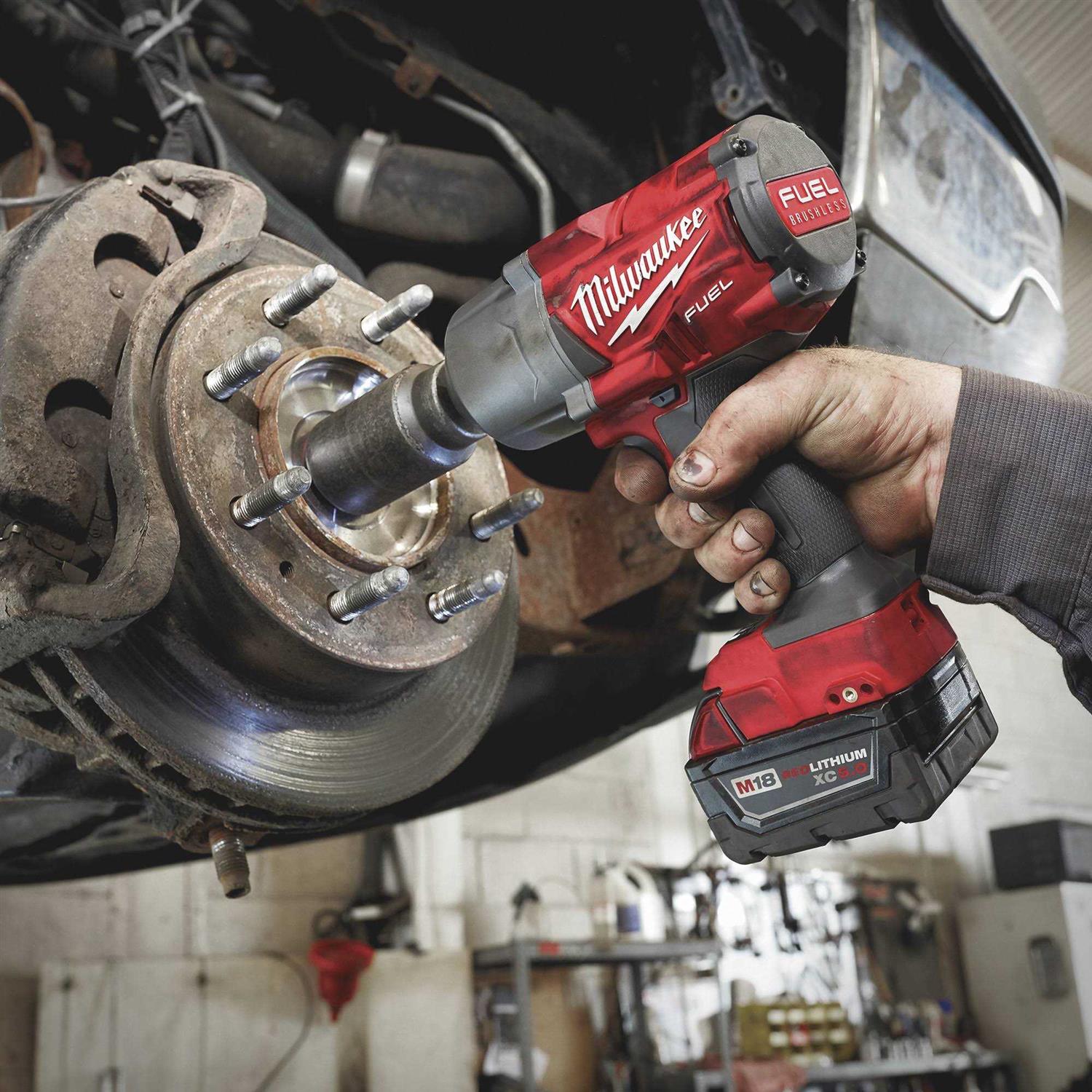 The 2767 M18 FUEL high torque 1/2 in. impact wrench with friction ring eliminates the need to use a pneumatic tool for those stubborn and rusted bolts by delivering 1,000ft-lbs of fastening torque and 1400ft-lbs of nut-busting torque. With 2X faster removal speed, users will be able to get the job done faster and be more productive throughout their day. By providing the industry’s most compact cordless high torque impact wrench at 8.39 in. in length, this tool allows for more access in tight spaces. 4-Mode DRIVE CONTROL with bolt removal mode gives users the most control over their fasteners. Bolt removal mode gives the user more control when removing fasteners by slowing to 750 RPM once the fastener has been busted loose. This tool offers quick, tool-free socket changes with a 1/2 in. friction ring anvil. A premium rubber overmold material gives you ultimate comfort during prolonged use while lasting longer against corrosive materials.
