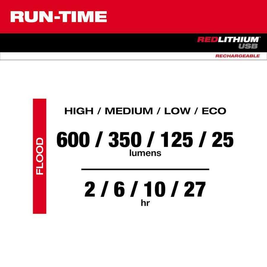 Milwaukee 500 Lumens LED Pivoting REDLITHIUM USB Flashlight with Extra USB 3.0 Ah Battery, Black