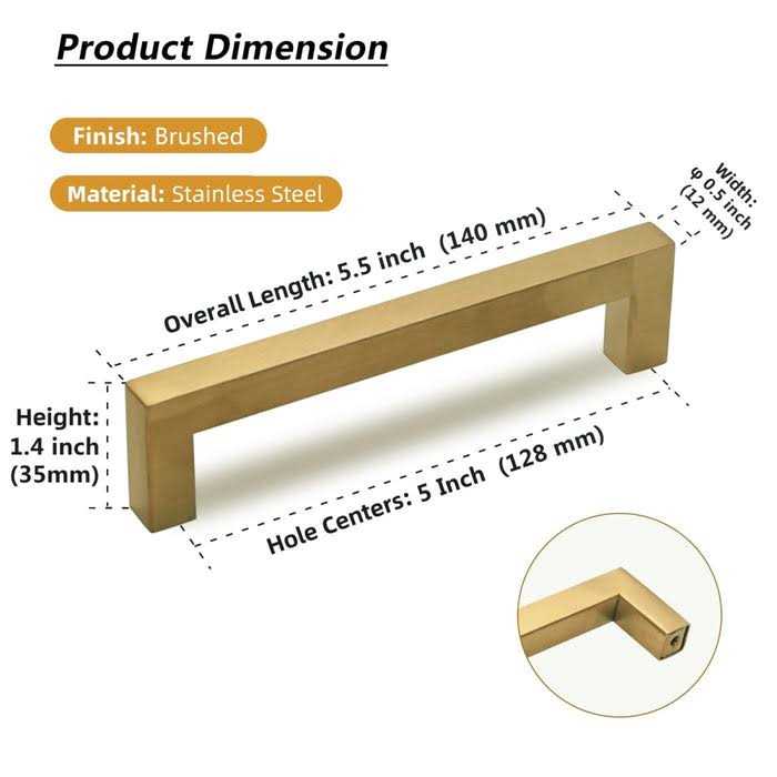 These gold drawer pulls with no shape edges, and are comfortable to grip, use this gold hardware to decorate your cabinets or update some old furniture, bringing you a modern look.