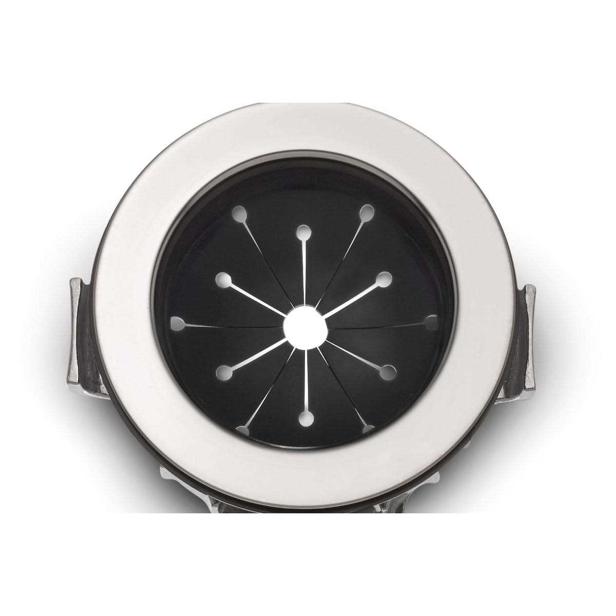 - Removable splash guard prevents any unwanted items from the sink from going down the drain or into the disposal