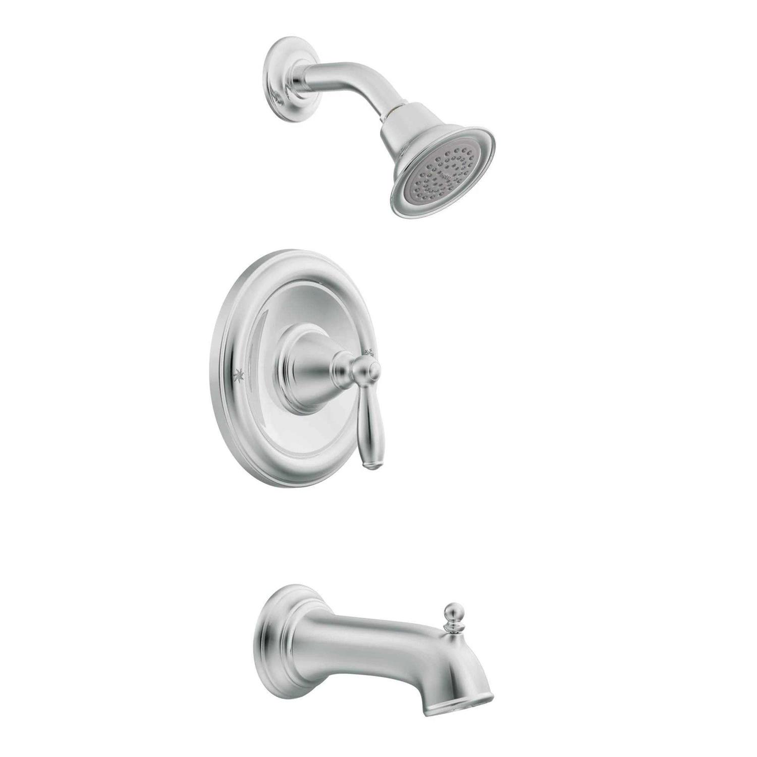 Now your bathroom will make impressions that last with the Moen Brantford Bathtub and Shower Faucet. The lever handles make it easy for you to adjust the water to the temperature that is most comfortable for you and the shower head gives you a full body spray. This Moen shower faucet with PosiTemp pressure-balanced trim helps you to maintain water temperature in the shower even when other fixtures are running. The M-PACT valve system allows you to update your look and style as often as you’d like without replacing any plumbing.