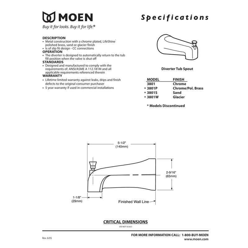From finishes that are guaranteed to last a lifetime, to faucets that perfectly balance your water pressure, MOEN sets the standard for exceptional beauty and reliable, innovative design. This Chrome diverter spouts is manufactured by MOEN, the #1 faucet brand in North America. This product features a chrome finish to create a bright, highly reflective, cool grey metallic look.