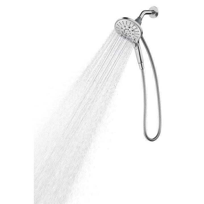 Features: Magnetix is an easy way to securely dock your showerhead. Simply move your showerhead near the magnetic dock and feel it seamlessly snap into place. Large 5 inch showerhead provides 6 spray settings, giving you many options to find your perfect pressure. WaterSense certified, delivering low flow 2.0 GPM, without sacrificing performance. Chrome finish is long lasting and provides an elegant touch to any bathroom. Set includes 5” handheld showerhead, magnetic holder bracket and 60 inch metal hose, so you have everything you need for installation Description: Moen is known for quality in the industry, providing products that exceed industry standards. Magnetix is just one of many reasons that proves Moen is not only a leader in the industry, but is dedicated to innovation. Relax and enjoy with your easy to use Handheld Showerhead with Magnetix, only by Moen.