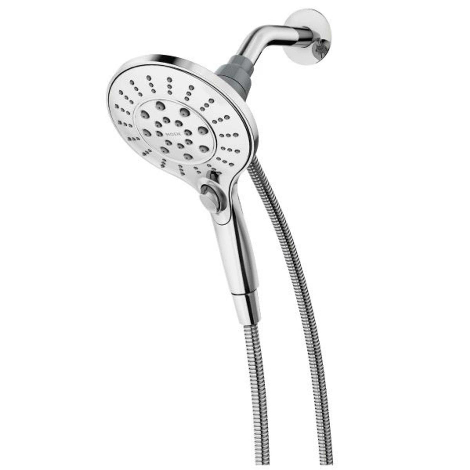 Features: Magnetix is an easy way to securely dock your showerhead. Simply move your showerhead near the magnetic dock and feel it seamlessly snap into place. Large 5 inch showerhead provides 6 spray settings, giving you many options to find your perfect pressure. WaterSense certified, delivering low flow 2.0 GPM, without sacrificing performance. Chrome finish is long lasting and provides an elegant touch to any bathroom. Set includes 5” handheld showerhead, magnetic holder bracket and 60 inch metal hose, so you have everything you need for installation Description: Moen is known for quality in the industry, providing products that exceed industry standards. Magnetix is just one of many reasons that proves Moen is not only a leader in the industry, but is dedicated to innovation. Relax and enjoy with your easy to use Handheld Showerhead with Magnetix, only by Moen.
