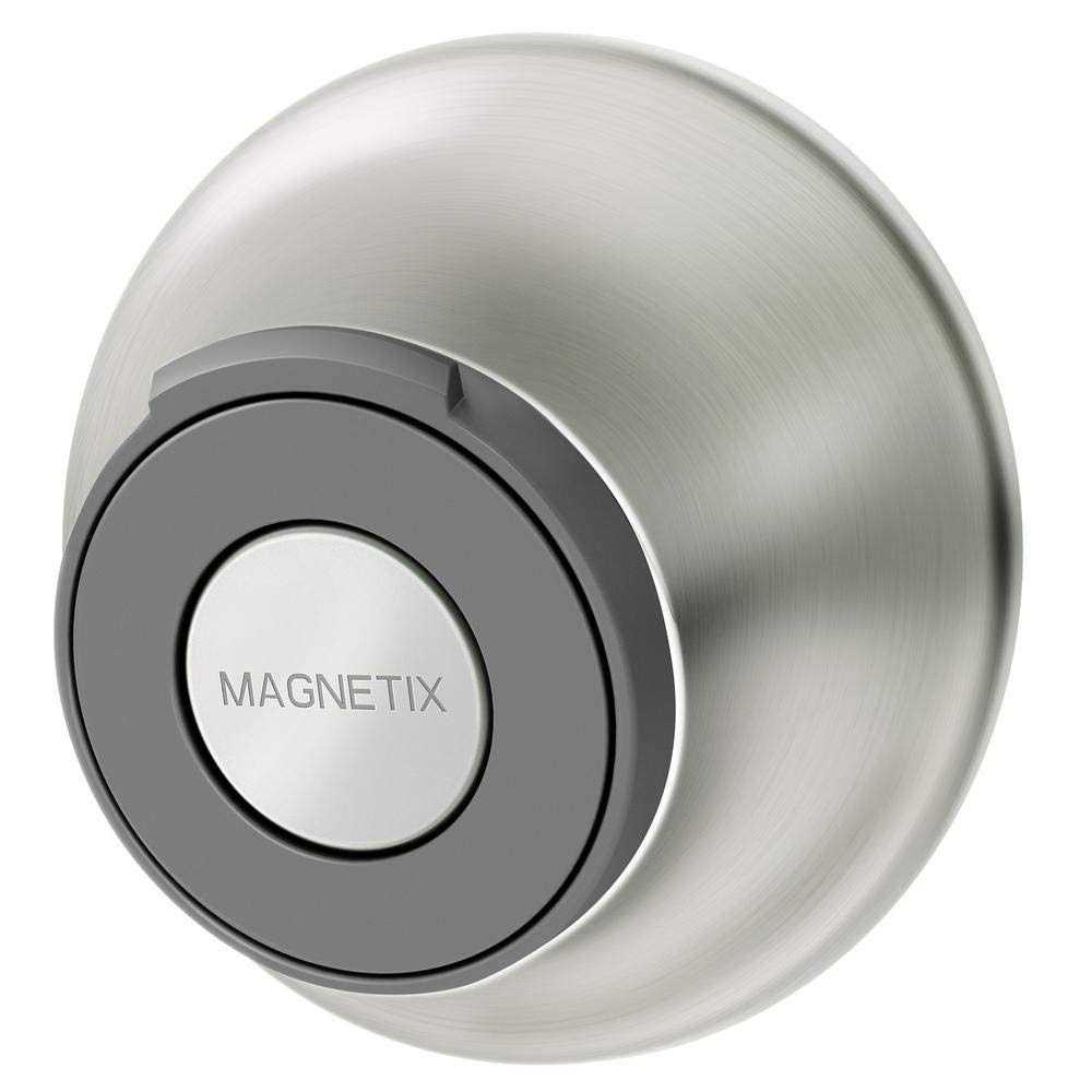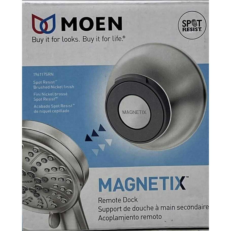 The MOEN Magnetix Remote Dock provides additional docking where you need it most. Quickly mounted with either the included permanent waterproof adhesive or screws and wall bracket, the dock works with any Magnetix showerhead as an alternate location to secure your handshower, providing easy access at any height. Its ideal for bathing children and pets or seated bathing. Available in a Spot Resist Brushed Nickel finish for a perfect match to all Magnetix showerheads.