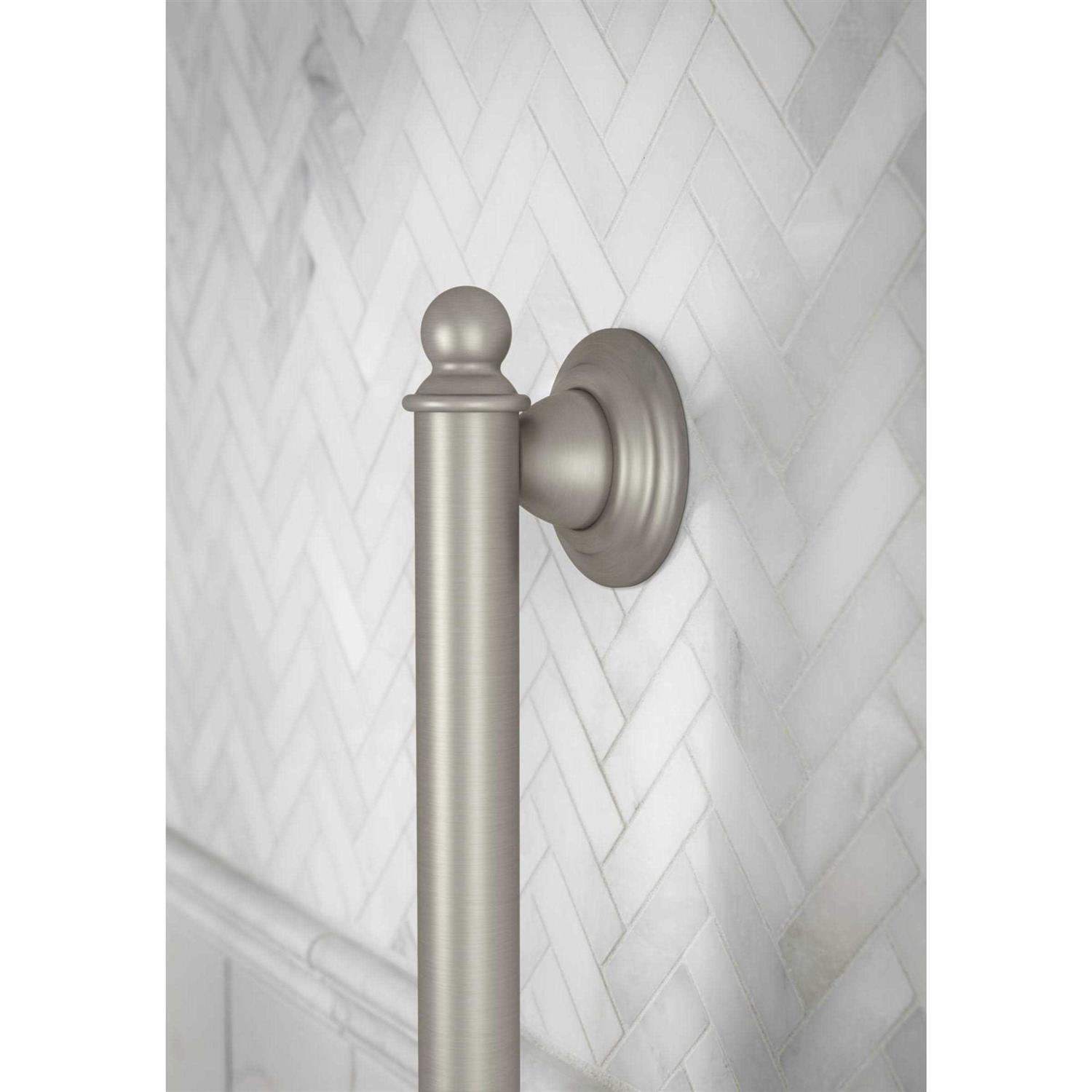 The Moen Brantford 18-Inch Designer Bathroom Grab Bar combines functionality with traditional style. This ADA grab bar supports up to 500 pounds. Its 1.25-inch diameter provides a reliable handhold whether you’re showering, bathing, or using the toilet. From the Brantford collection, this bath grip features an architectural look that transcends time. An oil-rubbed bronze finish incorporates the warmth of bronze with light and dark accents, creating a rich look. Thanks to durable stainless steel construction, this Brantford bath grip provides lasting performance.