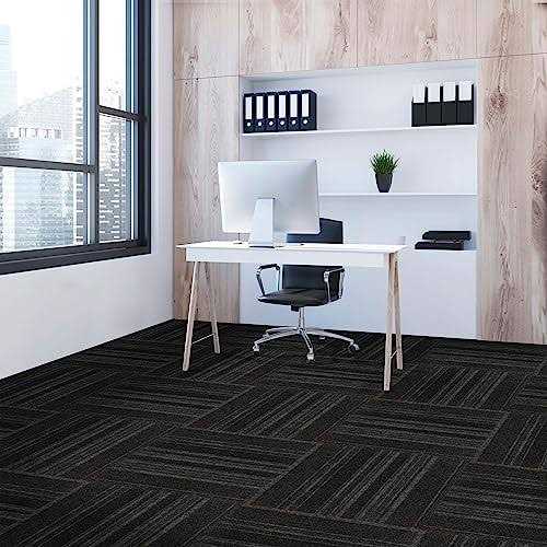 Mohawk Home 24″ x 24″ Indoor/Outdoor 0.25″ Pile Height, Peel and Stick Carpet Tile, Black POLYESTER, (15 Tiles) (60 sqft/box)