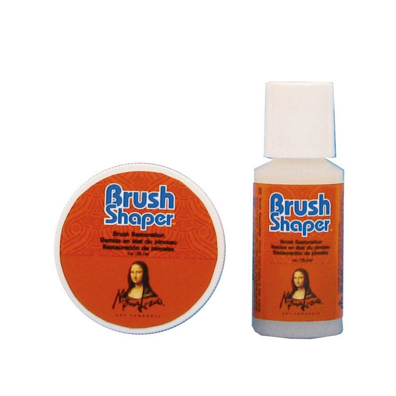Brush Shaper is a non-toxic sizing that restores artist brushes to their original shape, and helps to keep them in good condition for longer life. After your brush has been thoroughly cleaned, dip it into Brush Shaper and work the liquid into the bristles. Shape the brush to the desired point, and let dry. When the brush is ready to be used again, remove Bush Shaper by briskly moving the bristles back and forth or by rinsing with water. Size: Size 2 oz.