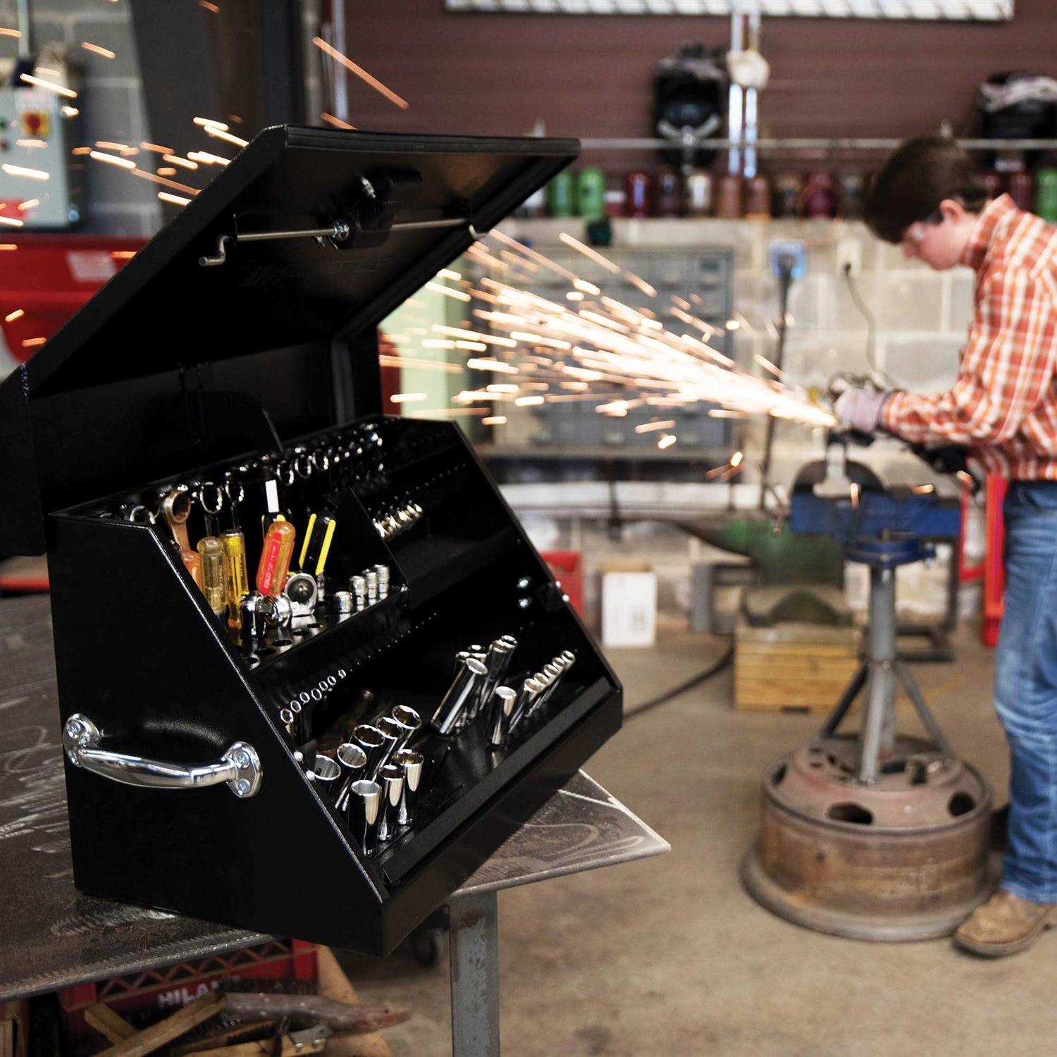 The 23 x 14 in. portable aluminum Triangle toolbox allows you to organize more than 129 tools and see them all at a glance. Use in your workspace or mount to a vehicle for work or play.