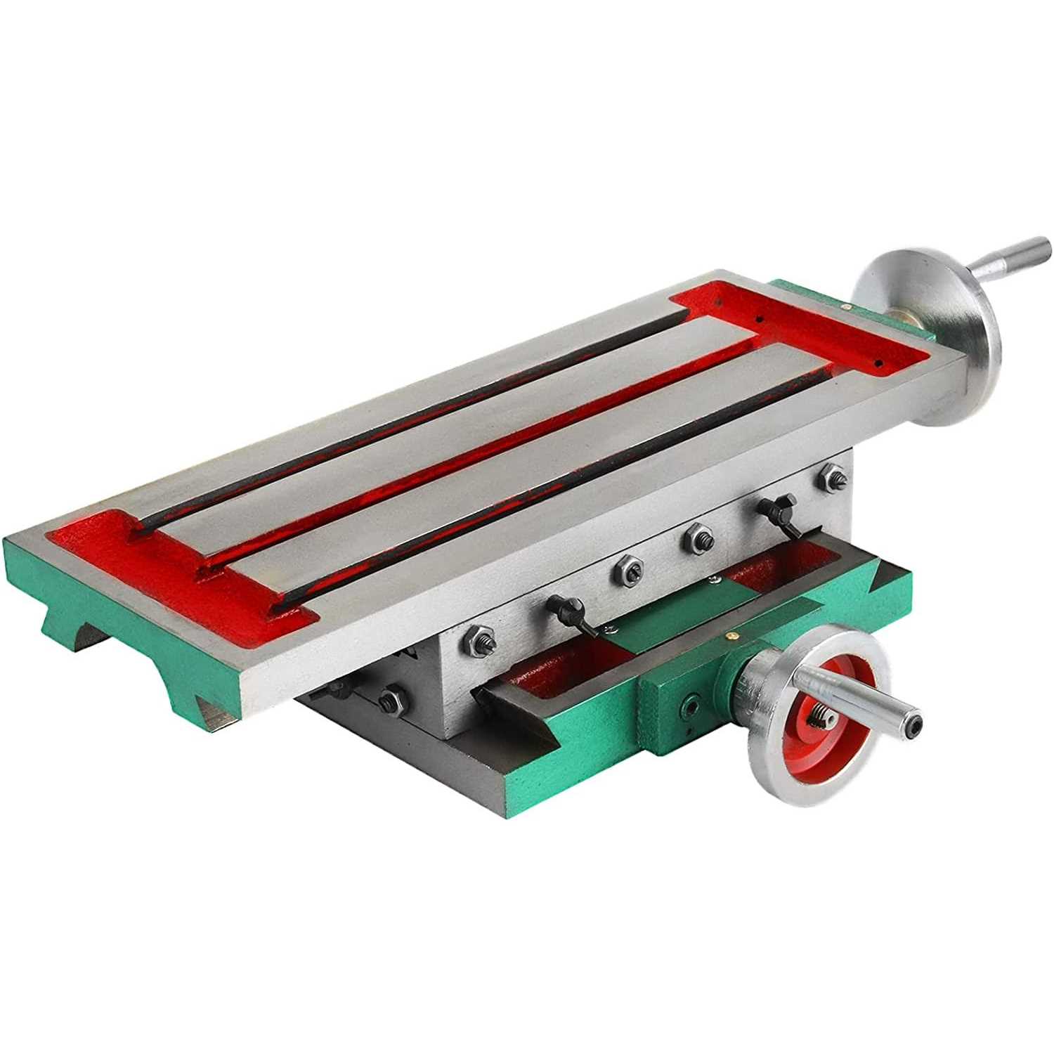 Premium Quality Structure: Built by heavy-duty cast iron material, which is anti-corrosion and rust resistance, angle milling table can withstand the tough environment and designed for long service time. Highly Polishing & Stiffness: The compound slide table, with great hardness and stiffness, is high ground and not easy deformation. Three precise T-slots can meet different force requirements. 2 Axis 4 Ways Move: Handles with trapezoidal thread spindles is easy to adjust the directions. X-axis travel: 210 mm, Y-axis travel: 110 mm. With a precise scale on it, you can adjust the optimal working position as you need. Tightness Adjustment: Equipped with several quality bolts and nuts, you can easily adjust the tightness of this cross slide table. Convenient for your use. Wide Application Area: This milling working cross table machine is great for mounting on drilling machines for precise positioning. It can be used for most types of milling and drilling, ideal for all drill stands, drilling, and milling machines.