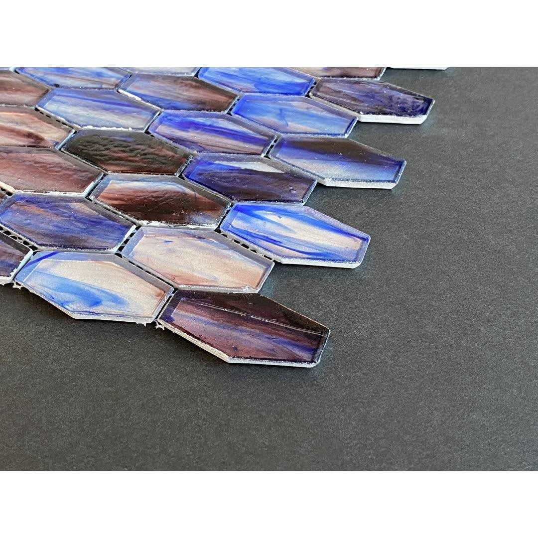 Color: 1. Purple 2. Cobalt Blue 3. Amber 4. Lagoon Material: Glass Mosaic Style: Honeycomb Overall Product Weight: 2.5 lb. Dimensions Mosaic Sheet: 12.25” W X 12.25” L Individual Tile: 1.25 W x 2.15 L Overall Thickness: 0.25 Surface Area per Carton: 10 SqFt It is mesh-mounted for easy installation. Installation Area: Kitchen Backsplash, Fireplace Front, Bathroom Wall, Shower Wall