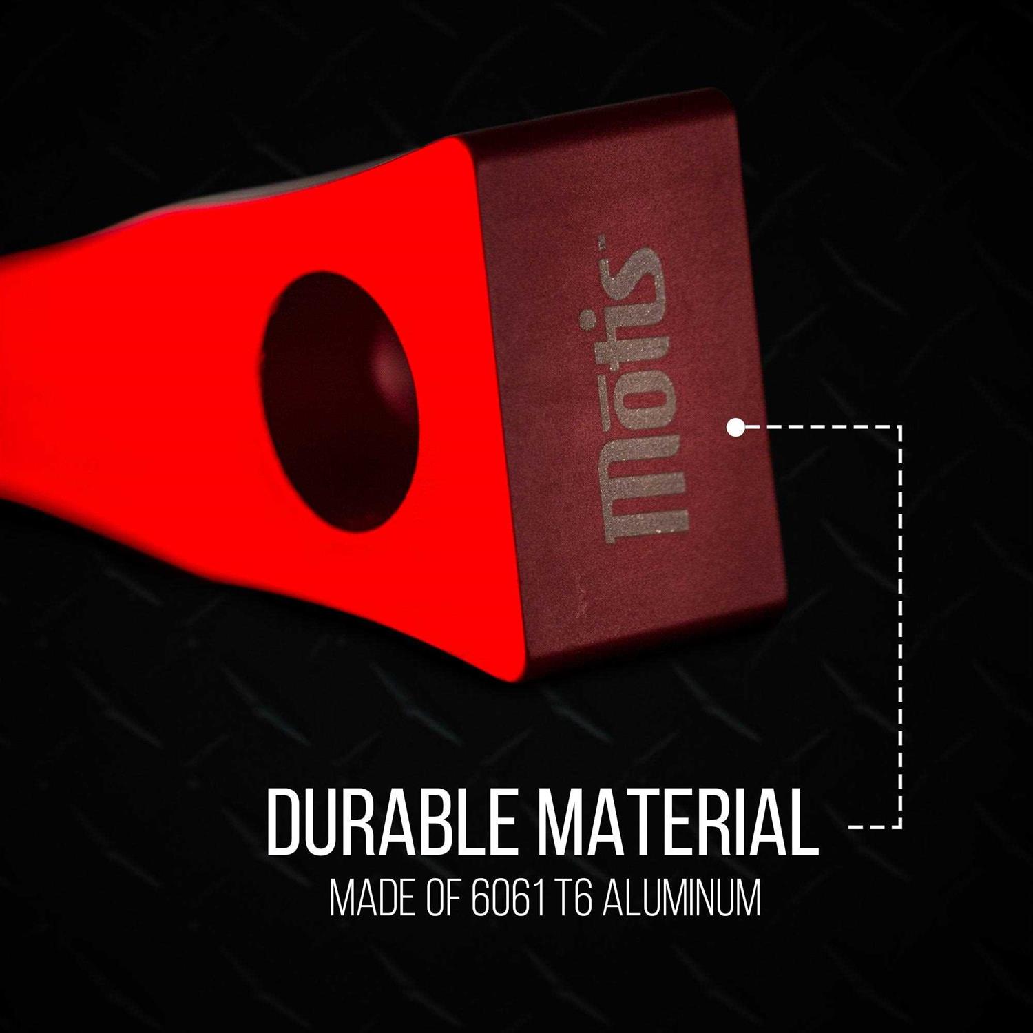 Weighing in at only 5 ounces, the Motis Forcible Entry Wedge is light weight, and made out of 6061 T6 Aluminum. The curved shape is designed for maximum effectiveness when forcing a gap. A small notch in the middle is used as an 02 Key.