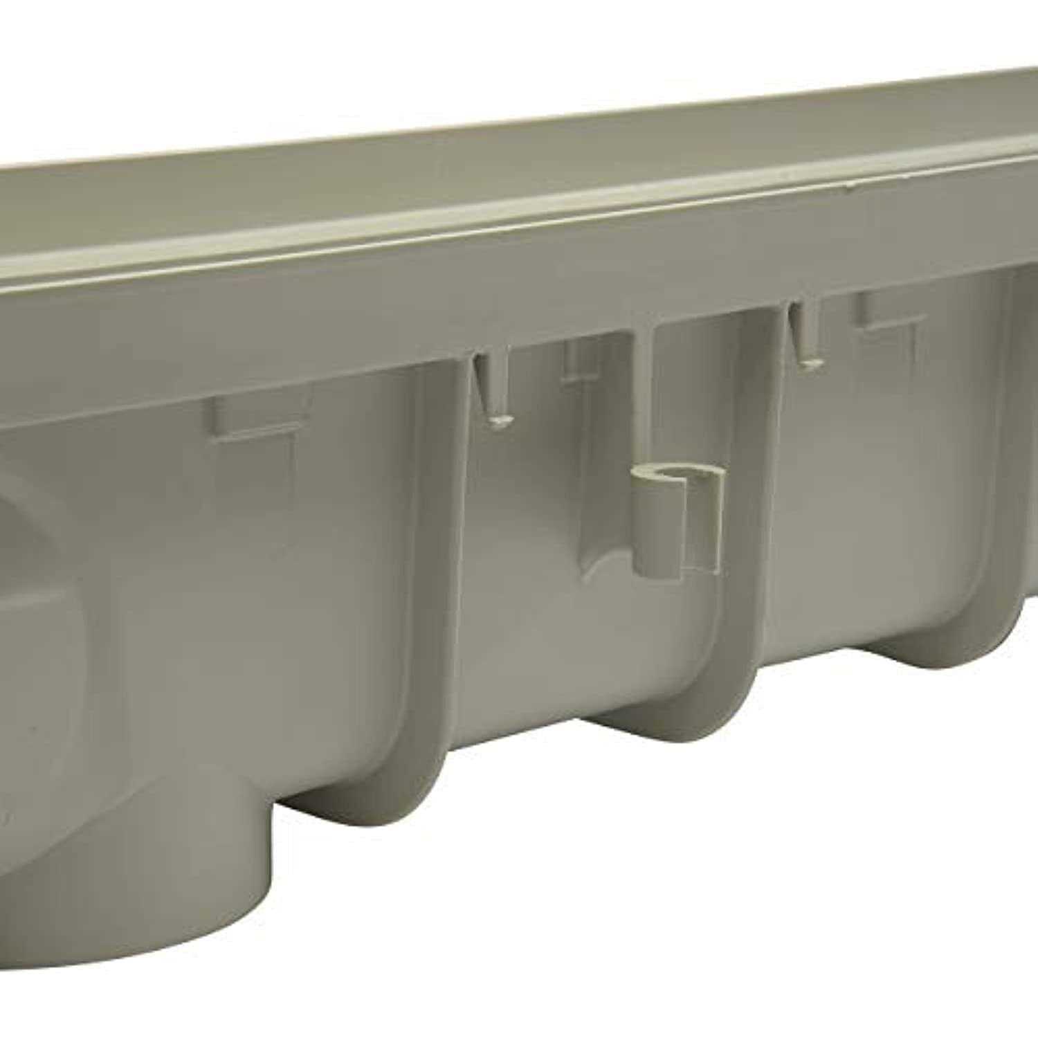 - The channel, end cap, and end outlet are made from polypropylene. The grate is made from galvanized Steel