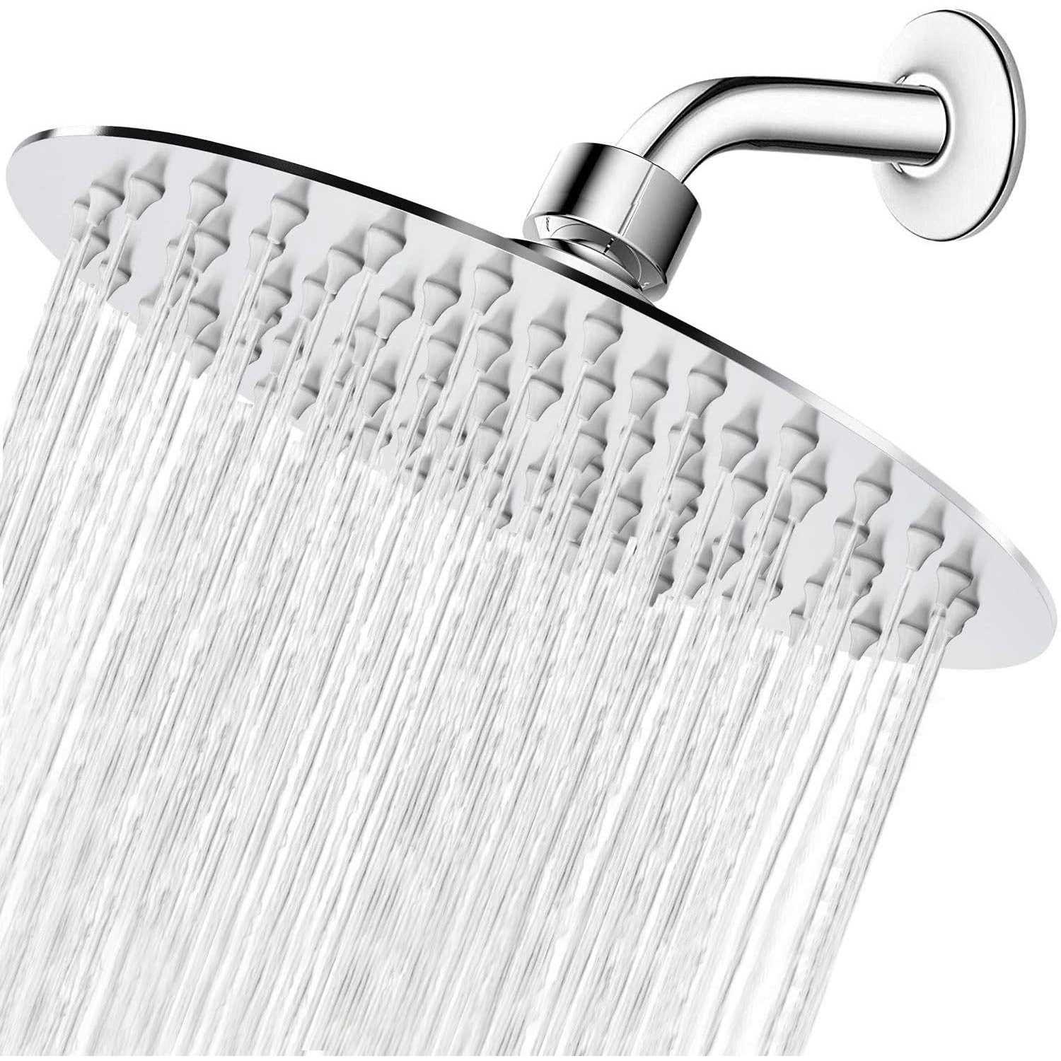 STYLISH, NICE LOOK, High Quality SHOWER HEAD-Most showers on Amazon which are cheap chrome plated plastic. NearMoon 8 inch wide designer rain shower is 100% heavy duty solid stainless steel, durable with the highest rust resistance. The surface chrome finish makes the showerhead beautiful and awesome match with any bathroom decor. ENJOY A POWERFUL RAIN SHOWER EVEN IN LOW PRESSURE AREAS-Extra large rainfall shower head, 90 silicon nozzles. With the swivel ball connector you can adjust and fix it to any angle you like. The combination of ultra-thin and air-in technology leads to high pressure and strong flow. Producing Rainfall effect possible even at the low water pressure. QUICK AND EASY TOOL-FREE INSTALLATION-It only takes a few minutes to install in wall-mounted or ceiling-mounted shower arms. With the swivel ball connector design, you will have good shower experience ever. BRAND ADVANTAGE-NearMoon has been committed to developing bathroom products for many years. Now is completed with extensive product lines, Better quality products, More favorable prices.