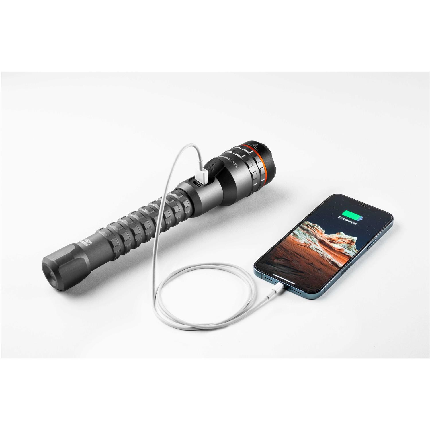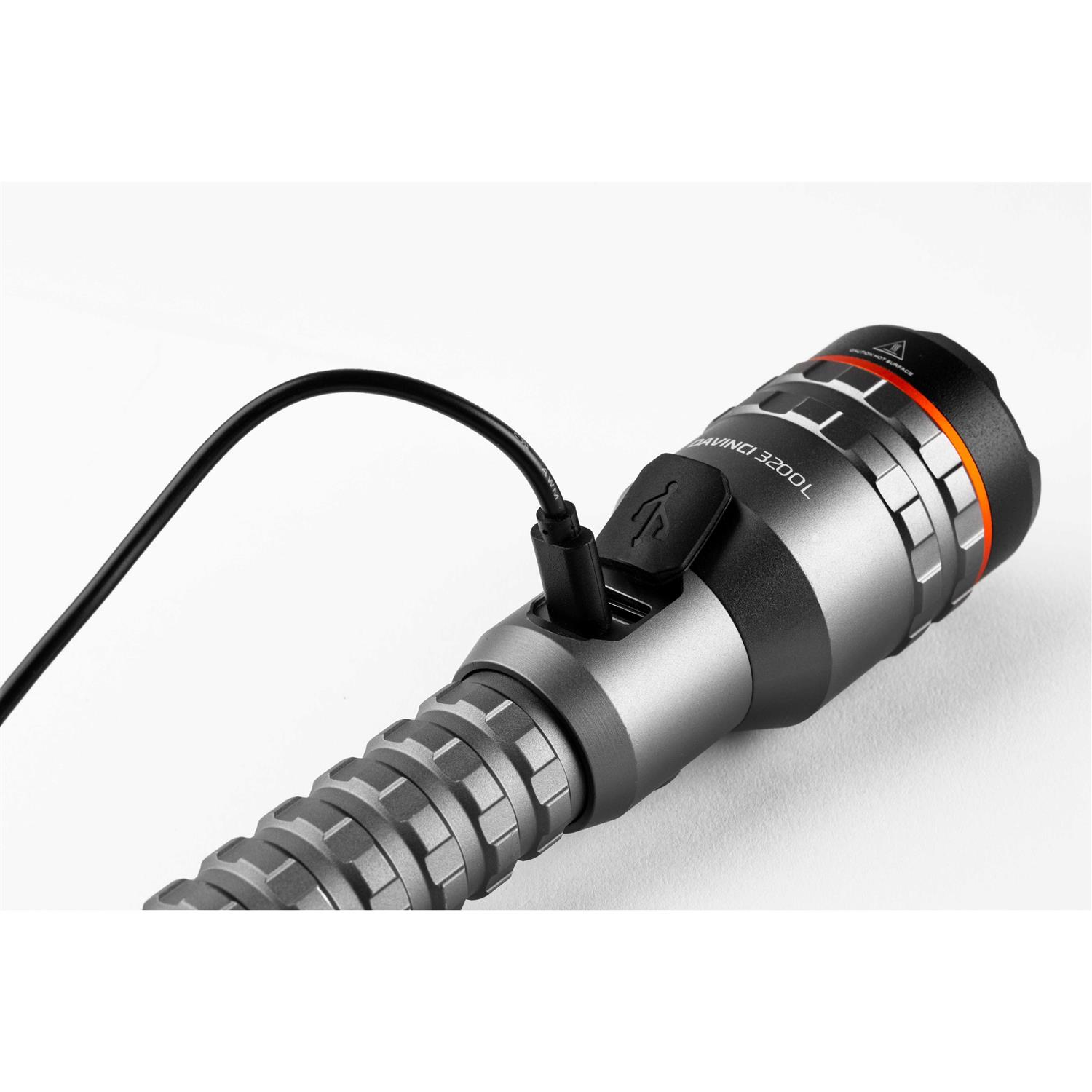 The NEBO Davinci 3200 has a rugged, yet refined design with LED technology and Direct-to-Low Startup. The push button mode selector allows you to easily select and cycle through light modes. With up to 3200 lumens and 4 light modes, you can adapt to any situation by selecting the right light output and beam distance while conserving power and extending battery life. It is USB-C rechargeable and thanks to a USB-A port, you can even use it as a power bank to transfer power to a mobile device. The removable lanyard assists with drop protection. The rugged aircraft grade aluminum body is durable, yet lightweight and the IP67 rating means that rainstorms wont put a damper on accomplishing your tasks and having an adventure.