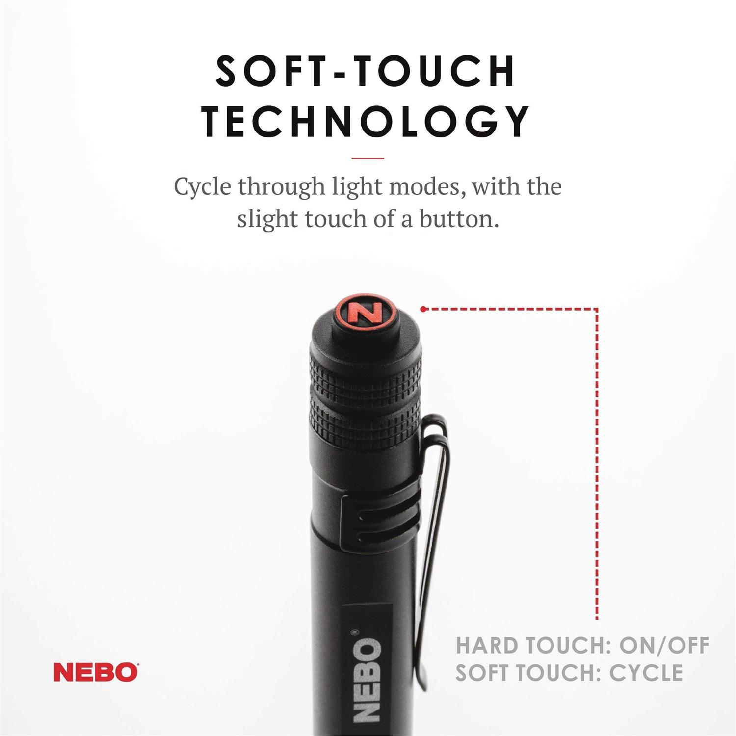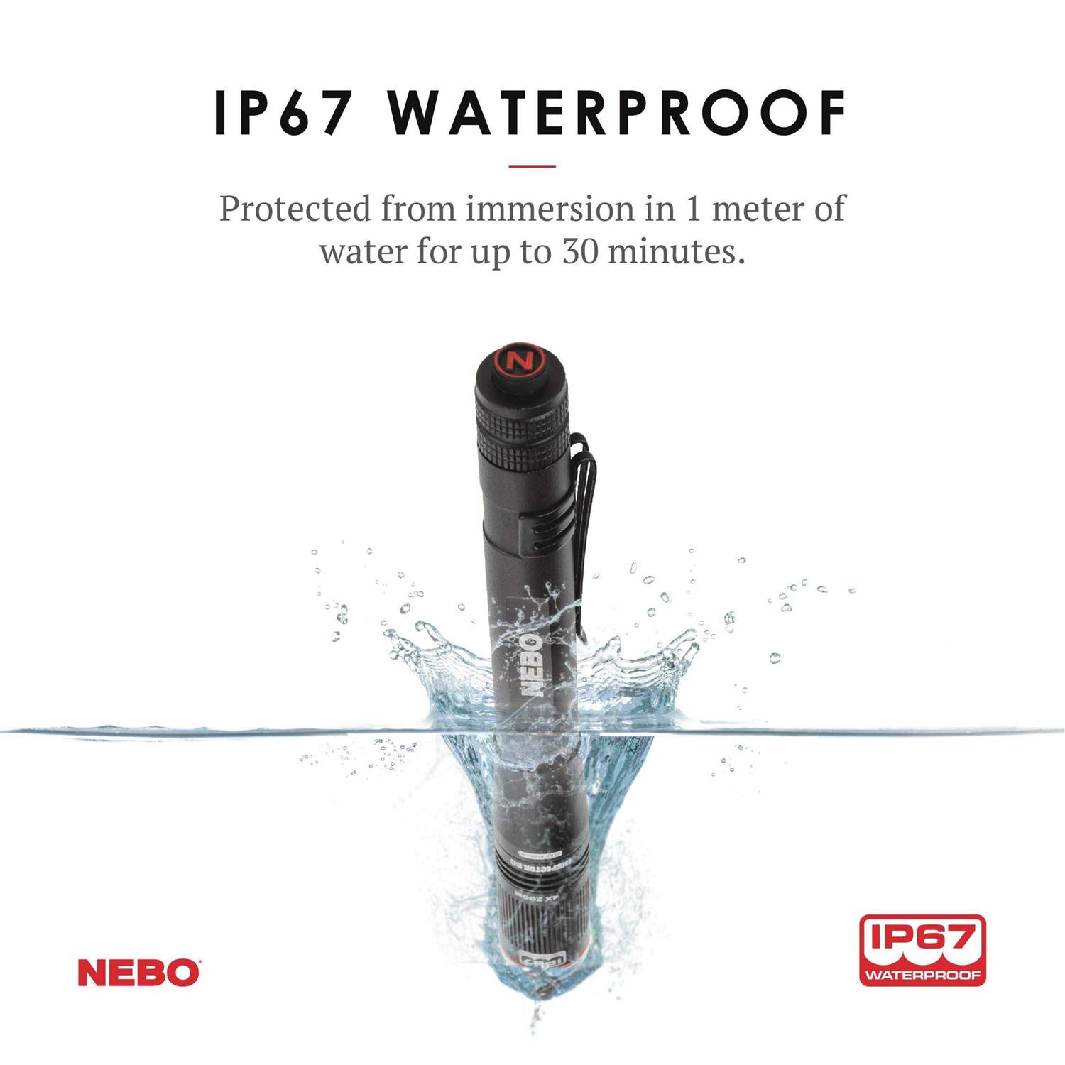 With a minimalist footprint and maximum adaptability, the NEBO Inspector RC Penlight is up for anything. Made from impact and water-resistant aerospace grade aluminum, this compact penlight features the FLEX-POWER dual fuel technology that adapts to everchanging environments. Utilize 3x modes capabilities at the touch of a side positioned Soft-Touch button. The streamlined design easily slides it into a pocket and is secured with a removable clip when not in use. This versatile pen light comes with an 10850 rechargeable battery and micro-USB to USB charging cable.