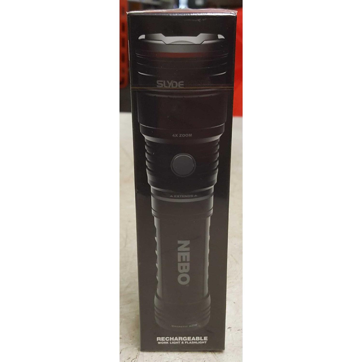 This 2nd Generation Slyde King from Nebo is equipped with programmable memory settings for each light mode, 500 lumen COB work light and LED flashlight, 40 lumens red light, and red flasher. The rechargeable led flashlight is easy to use- twist the Slyde King to illuminate the flashlight. The impact and water-resistant Slyde King flashlight is enclosed in anodized aircraft-grade aluminum. Use the Nebo Slyde King as an LED flashlight outdoors or work light for tasks involving precision; it illuminates with 4X zoom to give a clear vision.
