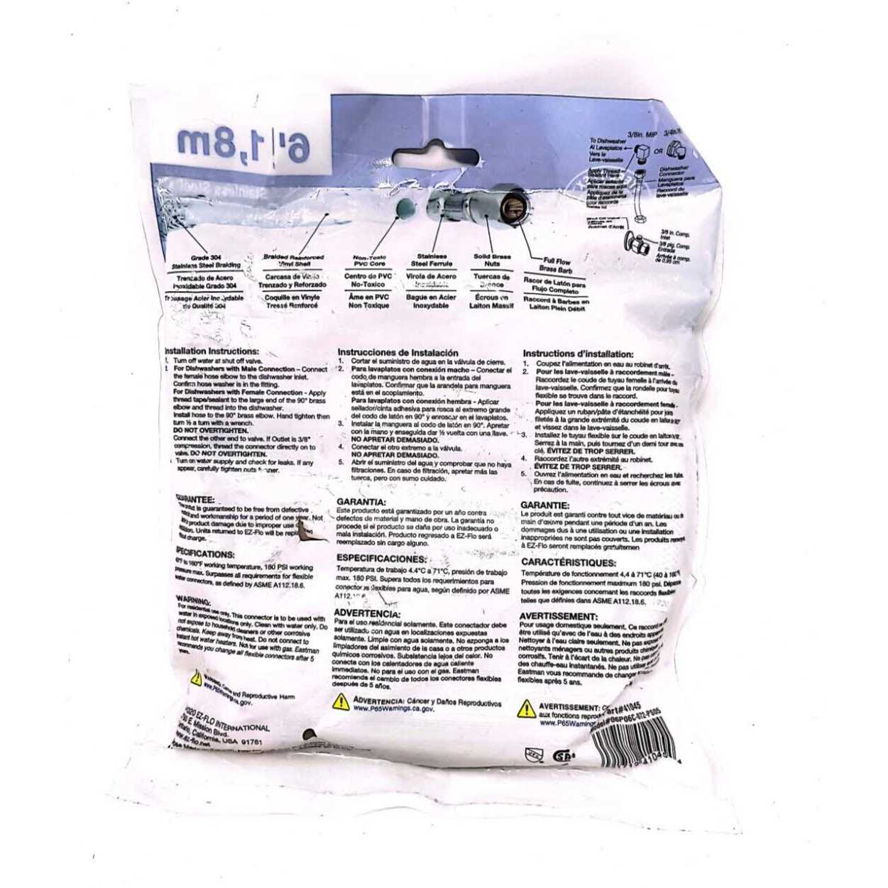 Eastman 41045 Dishwasher Hose Universal 6ft