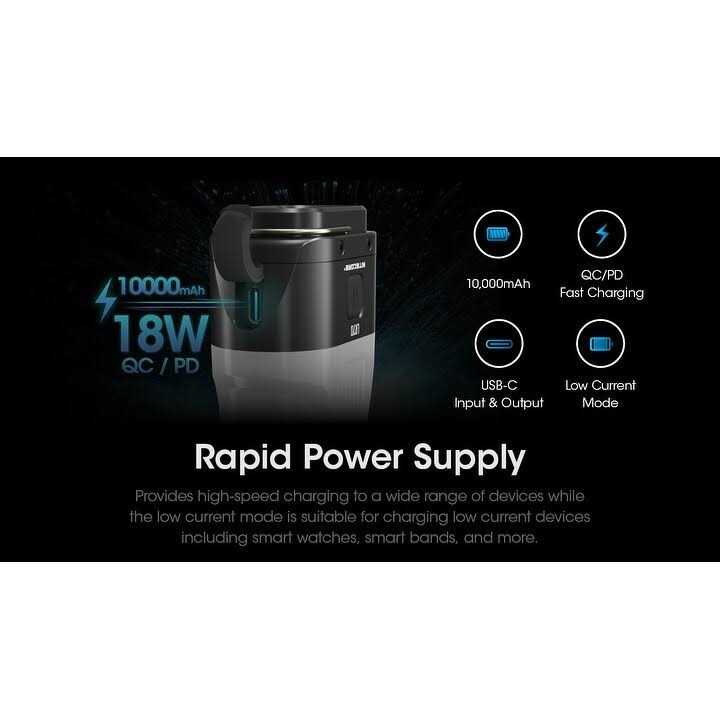 The Nitecore LR70 is a versatile 3-in-1 camping lantern, flashlight, and power bank. When used as a flashlight, it is capable of producing up to 3000 lumens and providing a throw distance of up to 328 yards, making it ideal for camping and outdoor activities. When you use the LR70 as a lantern, it can emit up to 400 lumens, providing 360-degree illumination whether it’s placed on a surface or hung. It also offers multiple red light options, including High and Low brightness settings to preserve your night vision, as well as Beacon and SOS modes for emergency situations. If you’re on the move, you can turn the LR70 on its side and utilize its Flashlight mode, which offers a choice of 5 different brightness settings. Furthermore, the LR70 features a built-in power bank function capable of providing QC/PD fast charging to a wide range of products, offering reassurance for low-power phones, smartwatches, or other devices via its USB-C port. You can even use the lantern while charging it simultaneously. When fully charged, the LR70 can last for up to 600 hours on its lowest setting, and a power level display keeps you informed about when it’s time to recharge. Designed for any terrain, the LR70 boasts an IP67 water-resistant rating and can withstand impacts of up to 1 meter. When you’re planning your next adventure, rest assured that the LR70 is airline-approved under the UN38.3 Standard, allowing you to take it with you wherever you go.