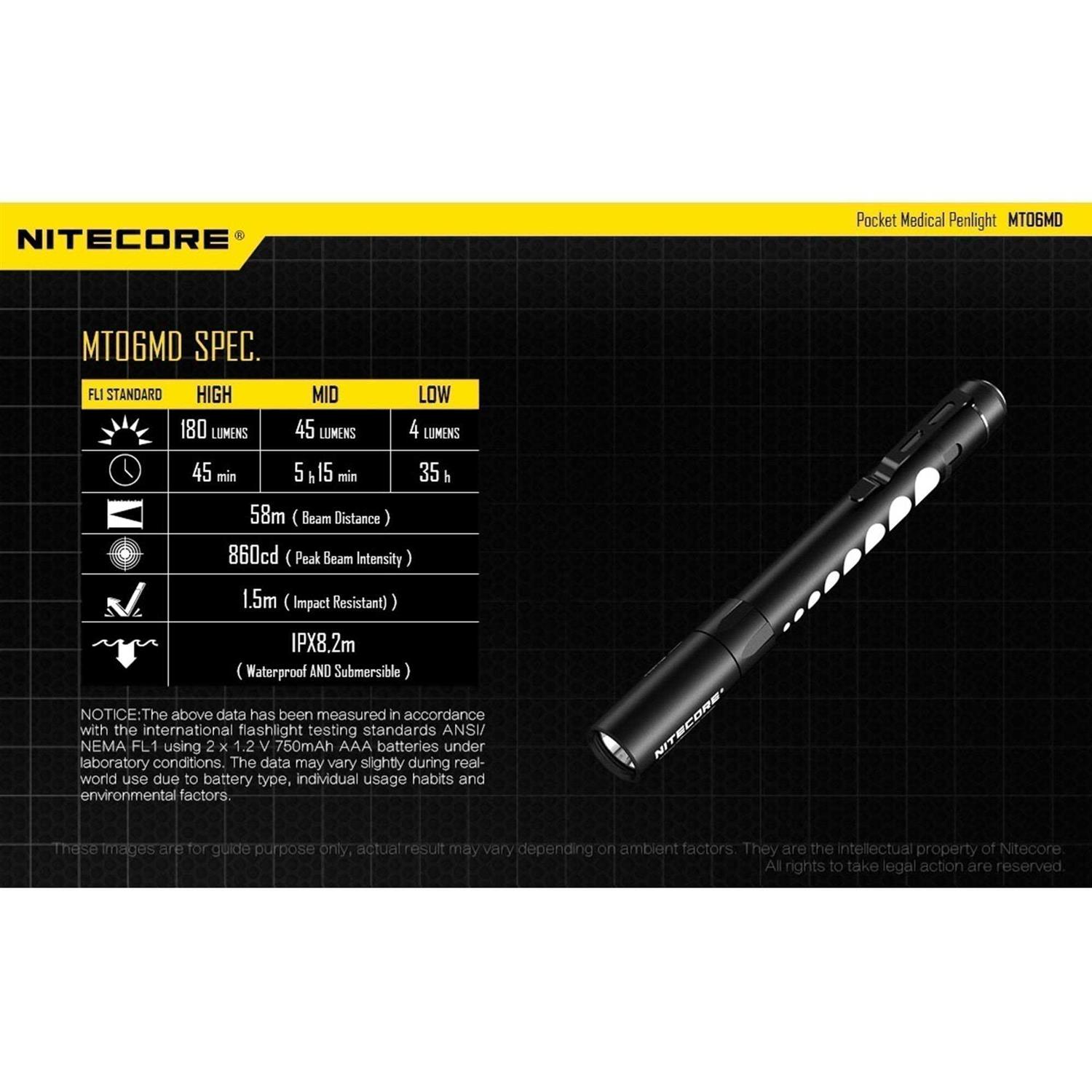Nitecore MT06MD 180 Lumen Nichia 219B 2xAAA LED Penlight – Pupil Gauge