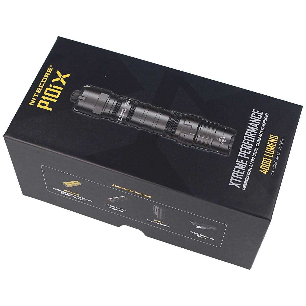 The NITECORE P10iX is unrivaled when it comes to performance. Nitecore took the beloved P10i frame and maintained the compact size, ergonomics, and quadrupled the power with four LEDs. This Xtreme High lumen flashlight outputs a 4000 lumen flood light that can reach up to 172 yards. Can you believe all that power fits in such a compact flashlight? Enjoy instant turbo, instant strobe, six brightness modes and two programmable user modes. For the slimmest high lumen flashlight nothing comes close to the Nitecore P10iX. The P10iX is part of Nitecore’s iSeries using intelligent 21700 batteries. This enables a potently efficient output, granting 30 minutes of 4000 lumen burst and a max runtime of 350 hours on low. Fast recharge the P10iX via its built-in USB-C port.With an IP68 waterproof rating and a covered charging port, the P10iX can be used safely in any climate. Included is a NTH10 hard holster that is compatible with duty belts and MOLLE systems.
