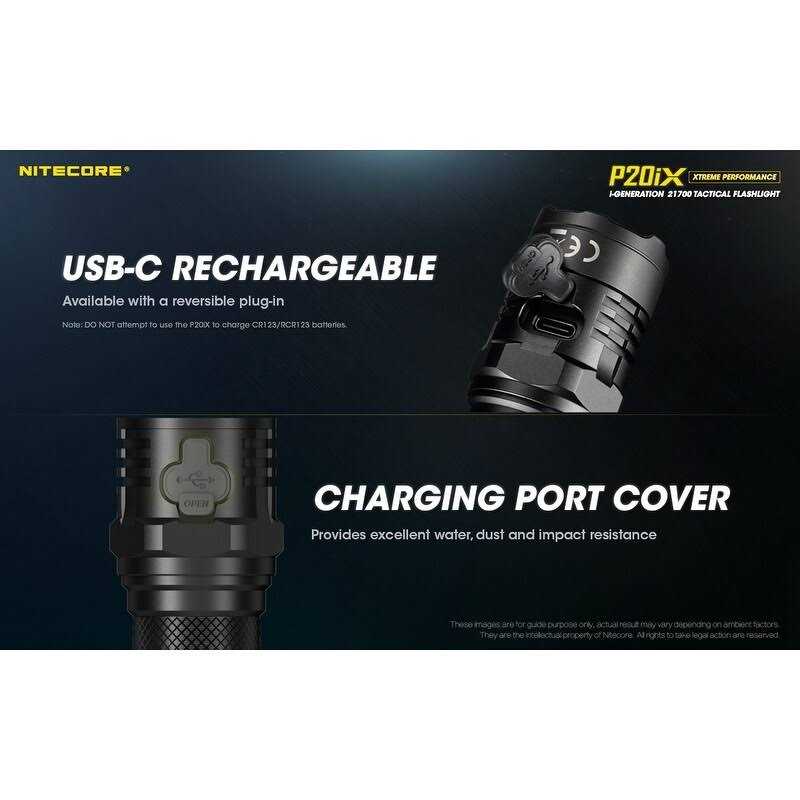 Bursts out 4000 Lumens light that can reach up to 241 yds., over 2 football fields and some 4 adjustable brightness levels and 3 special modes (strobe, SOS and beacon) USB -C fast charging technology that recharges the flashlight in 3-hours Enjoy quick access to the strobe mode with the pedal switch Includes the flashlight, battery, clip, lanyard, charging cable and holster Quickly charge the P20iX via its USB-C port and enjoy 30 minutes of 4000 lumens turbo and 350 hours of battery life at low temperatures. READY TO USE. With IP68 waterproof and anti-impact protection, the P20i is ready for high-intensity tactical operations.”