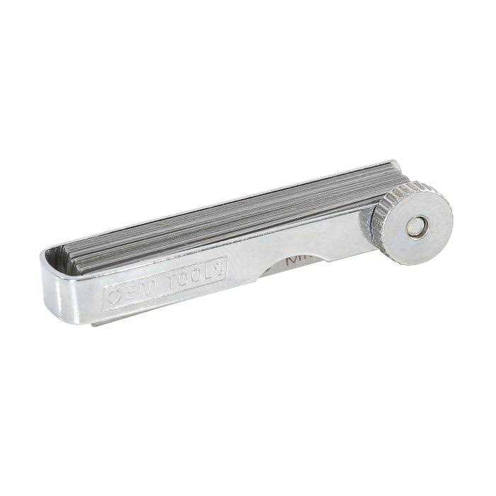 The OEMTOOLS 17 Mini-Blade Ignition Feeler Gauge is ideal for measuring the point gap on older ignition systems. Each brass blade is laser etched with both inches and millimeters. Its blade protector has thumb notch to aid Inch removal of blades.