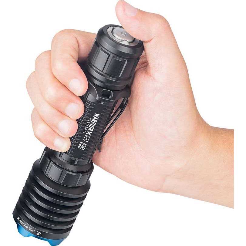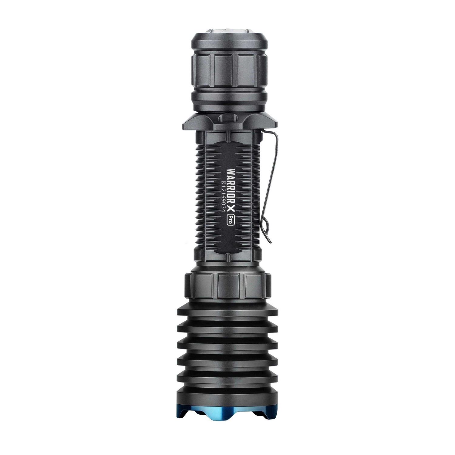 This item may be regulated for export by the U.S. Department of State or the U.S. Department of Commerce. The latest upgrade of the well-known Warrior X, The Olight Warrior X Pro features a brighter beam with longer throw and more runtime. It emits up to 2100 lumens of neutral white light at an impressive max distance of 546 yards. Powered by a 5000mAh 21700 Li-ion battery, this long thrower is equipped with 100% faster charging speeds and the ability to run for up to 8 hours, giving you more time to use the light.Just like its predecessor, the Warrior X Pro is convenient and easy to use. Simply click the raised tail switch button to cycle through the two output modes. To charge, place the magnetic charging cable onto the tail switch. This light is made to last with a robust aluminum alloy body, IPX8 waterproof rating, and 5 meter impact resistant rating. An ideal tool for hunting, search and rescue, and law enforcement activities, the Warrior X Pro can be paired with the optional RWX magnetic remote switch for additional applications.