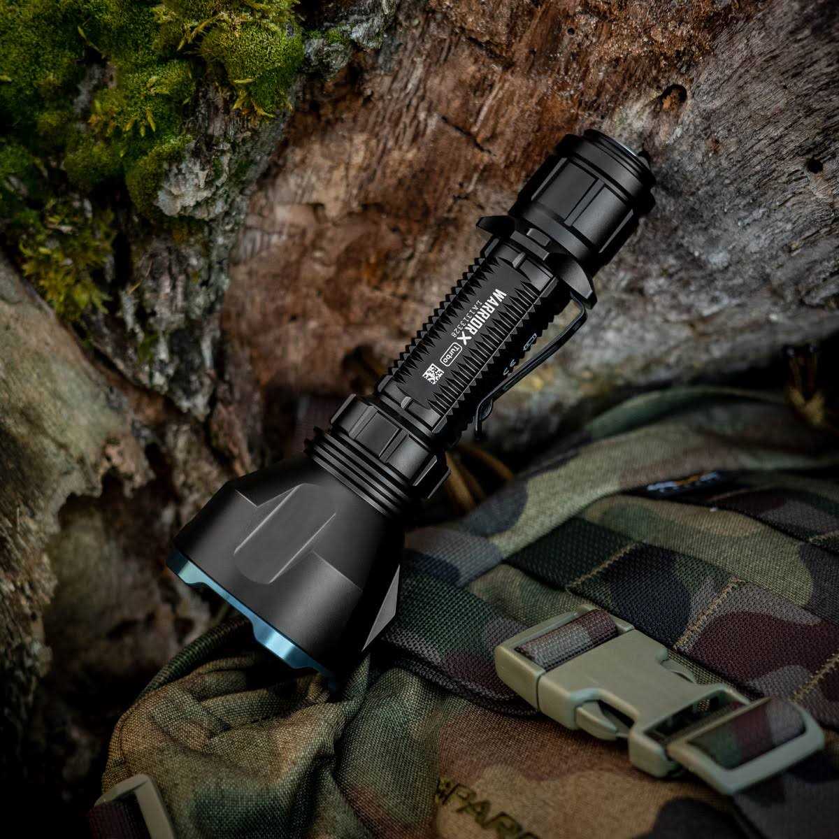 The Warrior X Turbo is a tactical flashlight that produces a long-range beam of light. In its compact size, the Warrior X Turbo delivers a maximum output of 1,100 lumens, a maximum range of 1,000 meters and yields a maximum runtime of 12.5 hours. It continues several features of the Warrior X series. The simple and aggressive design reaffirms its tactical identity. The magnetic tail switch also serves as a connector for the magnetic charging cable and magnetic remote switch. In addition, the tailgate is reshaped to more securely mount the remote pressure switch. With great power and a wealth of accessories, the Warrior X Turbo is an ideal light for hunting, search and rescue, law enforcement and outdoor activities.