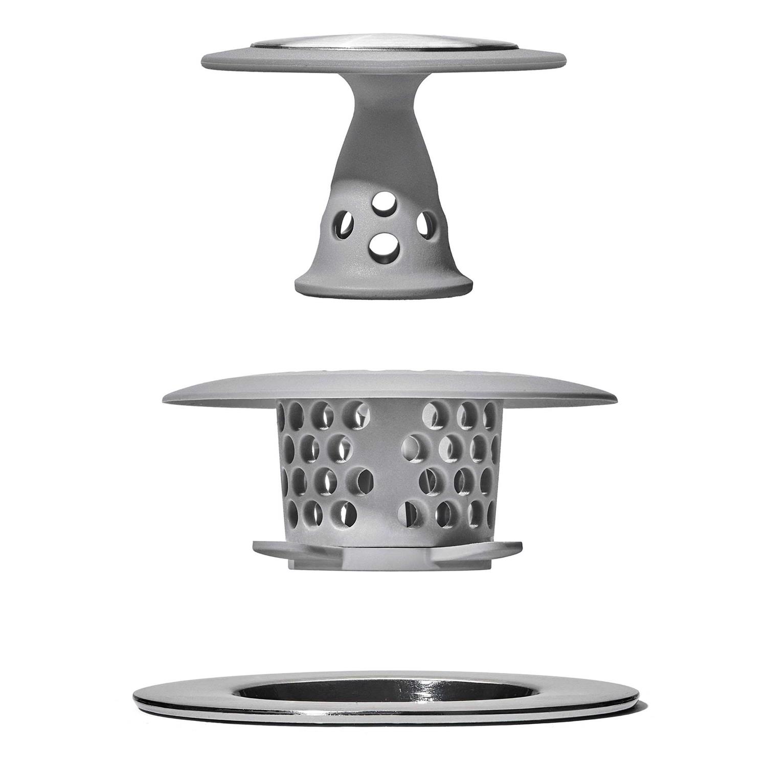 Makes cleaning the shower or bathtub easier, neater and more pleasant. Two-piece design catches hair without blocking water flow. Topper removes for easy cleaning. Flexible silicone catching cone. Stainless steel and silicone construction. Fits in standard 3.2cm to 4.57cm (1.25″ to 1.8″) diameter bath drains.
