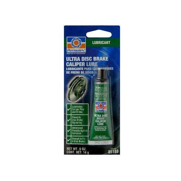 Permatex Ultra Disc Brake Caliper Lube is a non-melting, pure synthetic lubricant formulated to lubricate under most adverse brake conditions. Use on caliper pins, bushings, sleeves, and pistons.El Lubricante para Calibradores de Freno de Disco Permatex es un lubricante de sintetico puro, no se derrite, y es formulado para lubricar EN condiciones mas adveras del freno. Use EN pasadores del calibrador, casquillos, mangas y pistones.