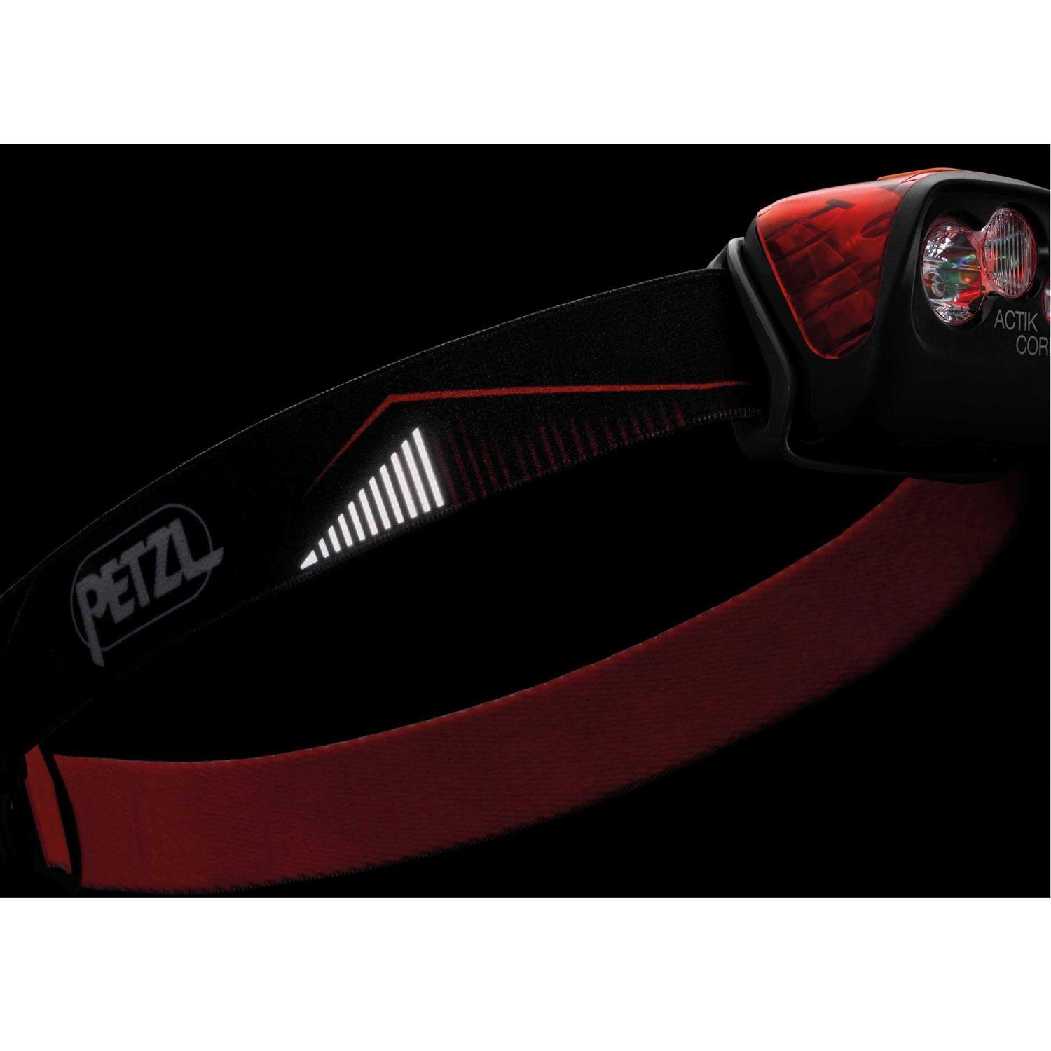 Petzl Stirnlampe Actik Core Head torch black – With a 350-lumen LED and a powerful Core rechargeable battery, the Petzl Actik Core head torch provides illumination up to a range of 95 m for up to 160 h. After this, the 1250 mAh Core rechargeable battery can simply be recharged. No chance to recharge while touring? The Petzl Hybrid Head torch can also be used with three ordinary AAA batteries. This lightweight head torch is IP X4 (weatherproof) and has an adjustable range as well as an additional red LED for close range which also acts as a signal light. In addition to the Actik Core’s reflective headband, there is a practical emergency whistle. Whether for trekking, running or other outdoor activities, the Actik Core is both versatile and reliable.