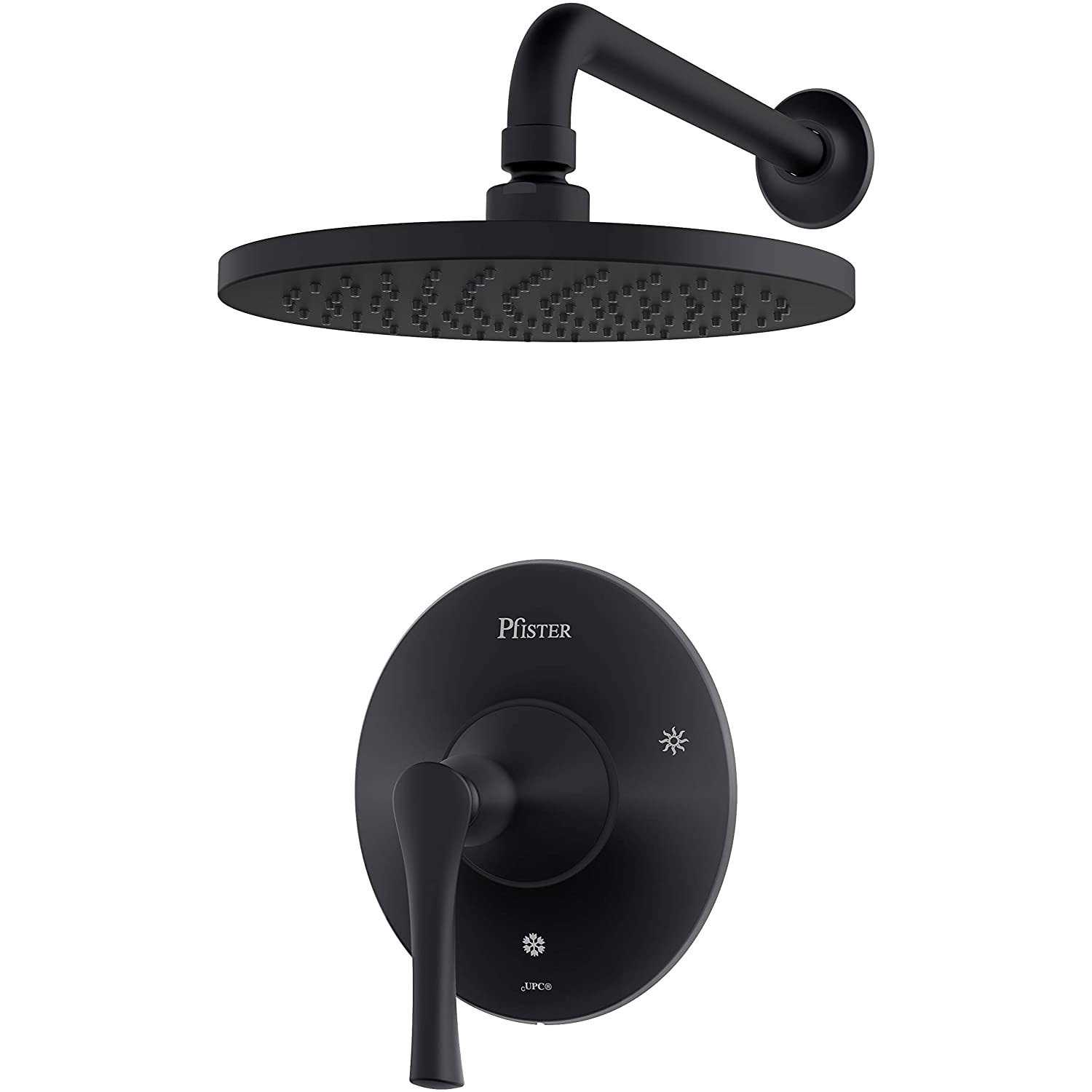 Pfister LG897RH Rhen Shower Only Trim Package with 1.8 GPM Single Function Showe Pfister LG897RH Features:Covered under Pfister’s limited lifetime warranty – Constructed from metal for reliability – Premier finishing process – finishes will resist rusting and corrosion through everyday use – Coordinates with products from the Rhen line seamlessly – Single function rain shower head – Pressure balance valve trim – single cartridge controls the temperature of the water and the on/off function – Designed to easily install with standard U.S. plumbing connections – All hardware required for installation is included – Complies with ADA standards – Valve Trim Specifications:Valve Trim Dimensions: 6-11/16″ H x 5-11/16″ WShower Head Specification:Single function shower head – Shower Head Flow Rate: 1.8 gallons-per-minute – Shower Head Width: 8″Shower Arm Reach: 13-11/16″ Single Handle Matte Black
