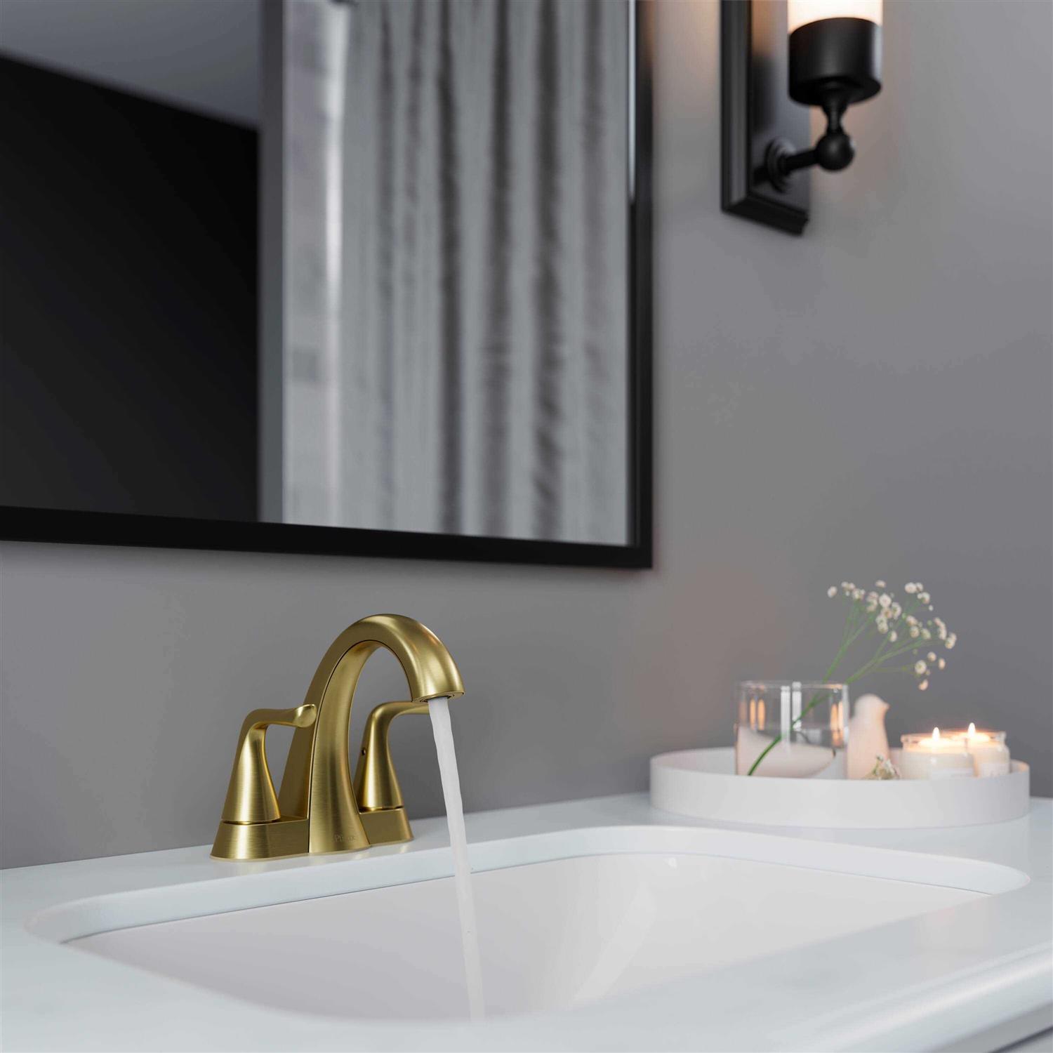 Pfister Willa Brushed Gold 4-in Centerset 2-Handle WaterSense Bathroom Sink Faucet with Drain | LF-048-MALBG