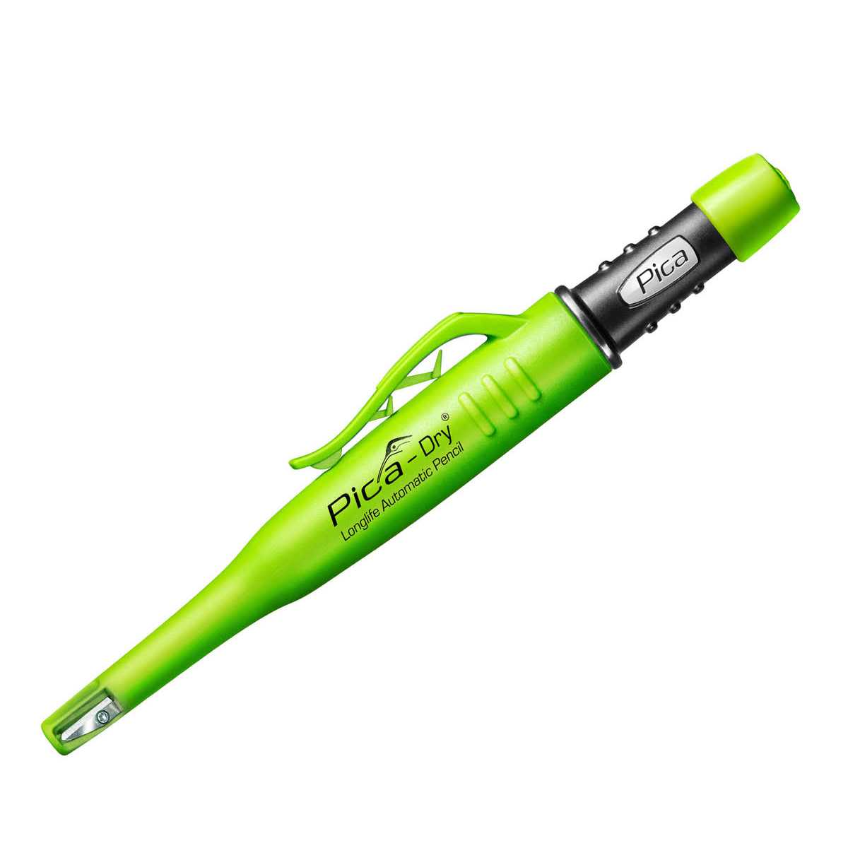 Pica-Dry Bundle Practical set consisting of 1x 3030 Pica-Dry Longlife Automatic Pencil; 1x 4020 Pica-Dry spare lead set Basic (graphite 2B, red, yellow) and 3030 Pica-Dry Longlife Automatic Pencil. Unique construction marker with dust and wetness protection -all-round protection against external influences thanks to push-button as umbrella cap and barrel with sealing ring. Extra strong clip and robust tip. High sustainability thanks to refillable leads. Versatile application possibilities. Can be wiped off smooth surfaces with a damp cloth. Ideal one-hand operation. Suitable for virtually all surfaces. Leads are already sharpened. In a robust plastic box.