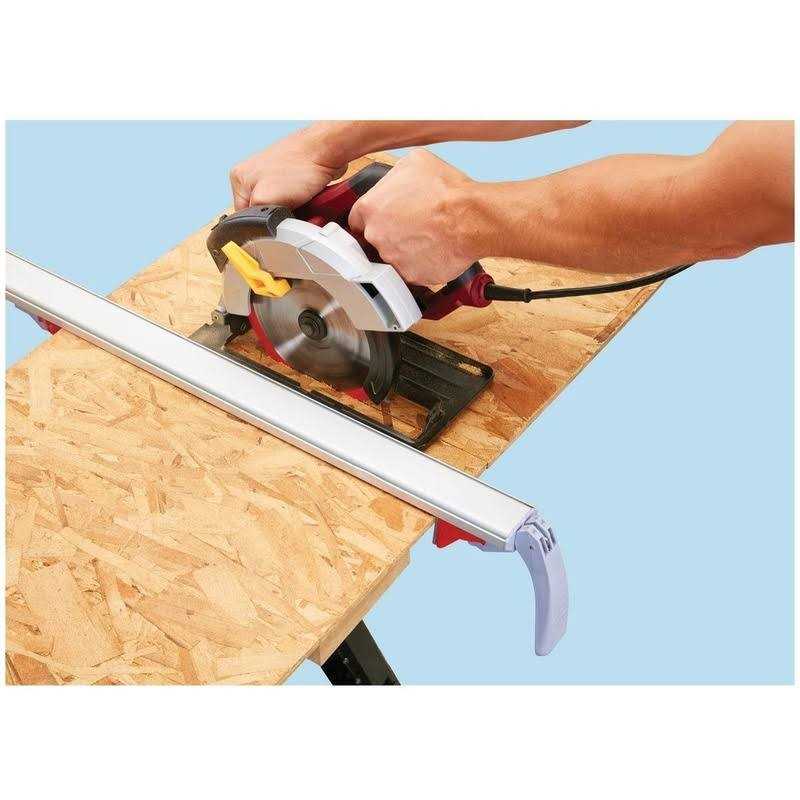 The clamp and cut edge guide is easy to set up, easy to use and designed for all sorts of woodworking and DIY applications. Features include soft swivel pads to secure materials, a large handle that applies firm clamping pressure and a lightweight aluminum construction for less user fatigue. Cut precise angles up to 22.5 degrees either left or right.
