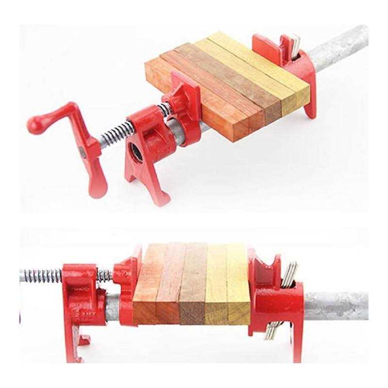 This pipe clamp has a unique base that supports your workpiece and keeps the clamp handle free to move. A four-plate clutch offers high clamping pressure and quick release. A heavy duty ACME lead screw, predrilled holes for attaching jaw pads, and cast steel construction provide durability.