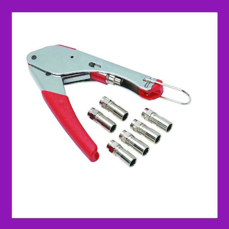 This easy-to-use coax crimper tool helps you replace F connectors quickly so that TV and internet connections are strong without any leakage. Put your R59 or RG6 coaxial cable in the crimp tool and squeeze the handle for consistent results. This compression tool comes with six connectors for indoor and outdoor applications.