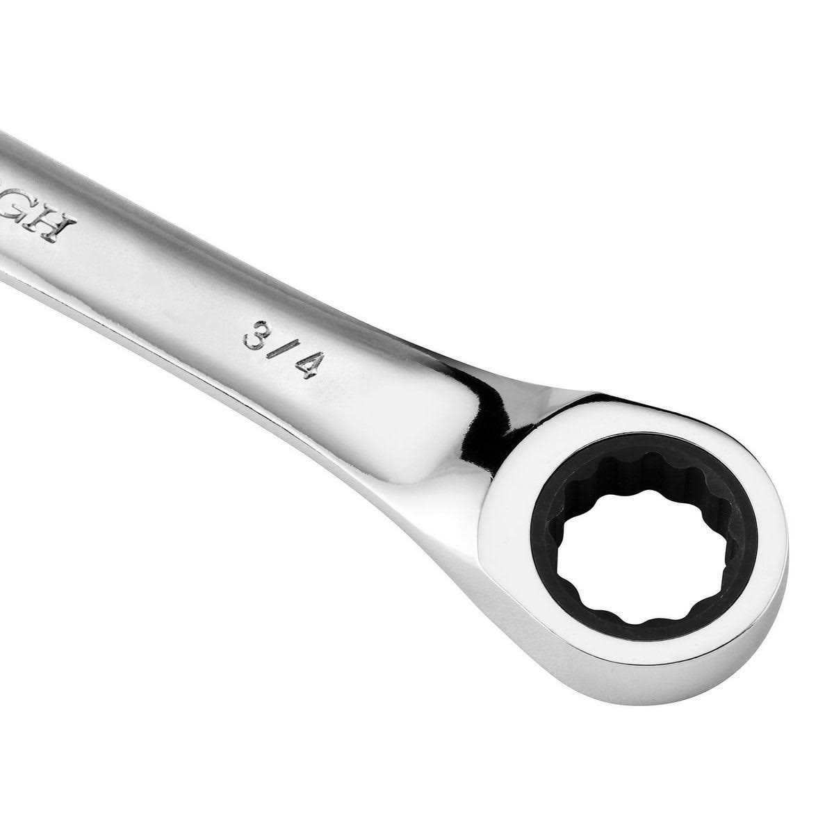 Made of durable chrome vanadium steel, this ratcheting combination wrench set has a generous 5 degree arc swing for working in tight areas. The fixed side features a 15 deg. offset head for better access. The wrench set comes with a custom storage case to keep your wrenches organized.