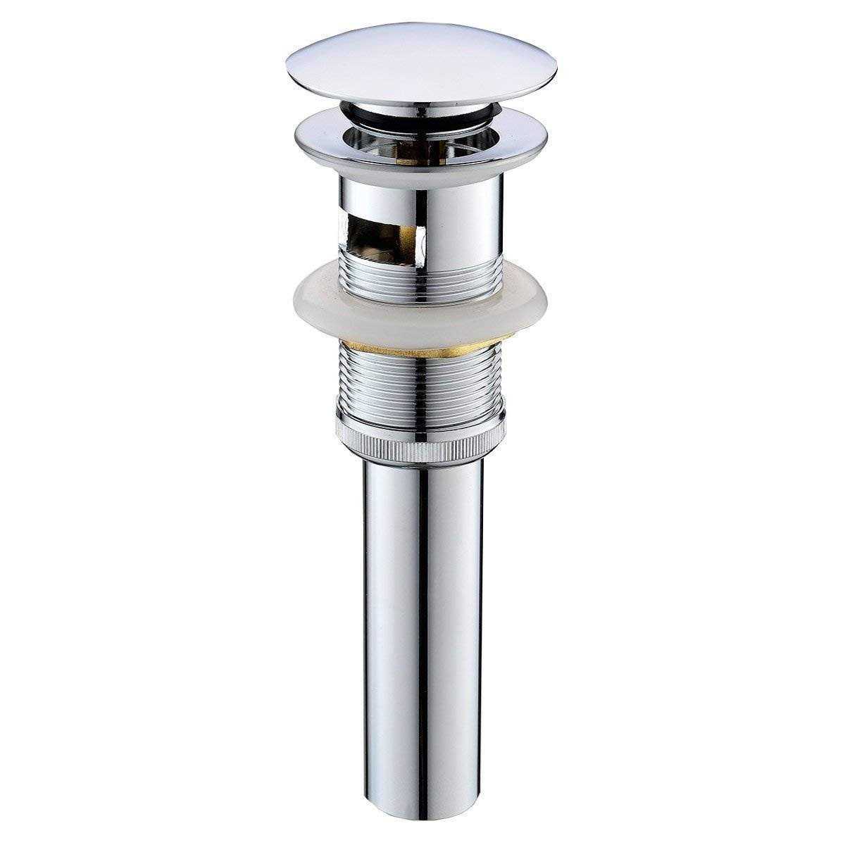 - Bathroom sink pop up drain stoper with standard hole size and overflow chrome finished.