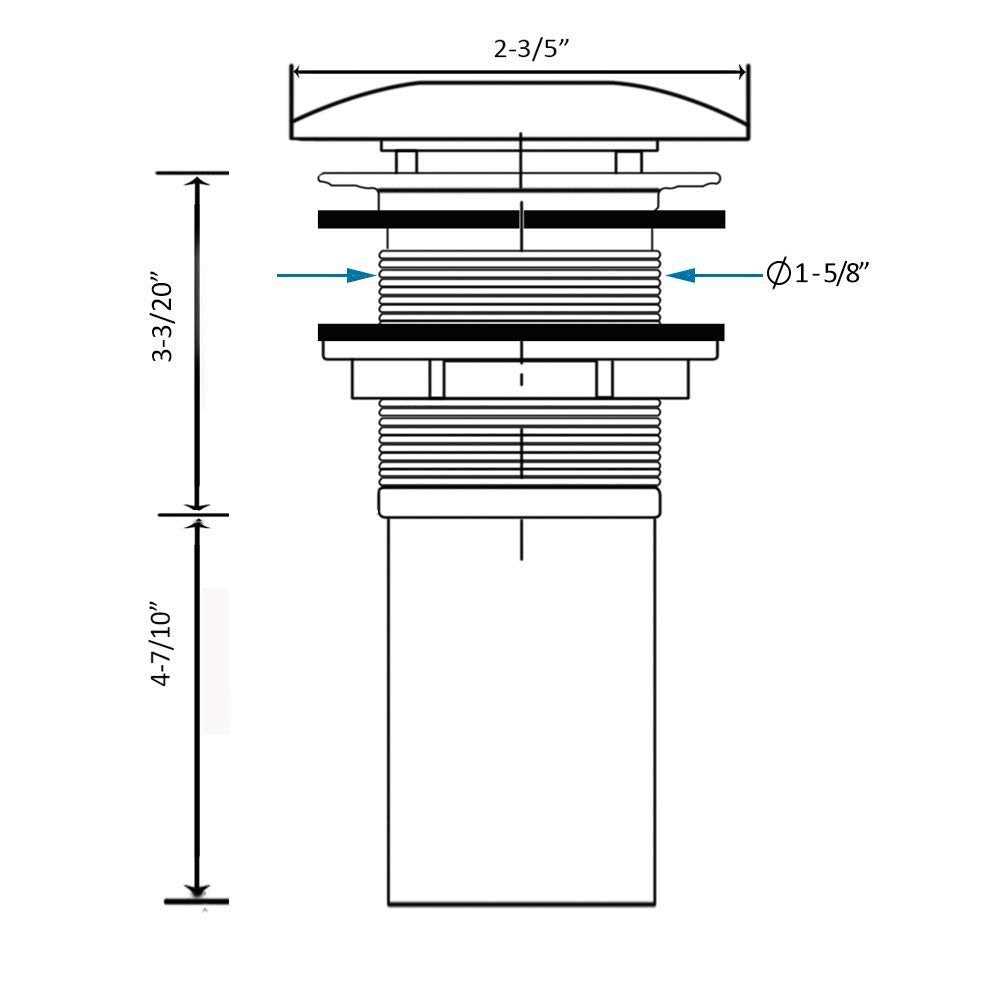 Stainless Steel construction and chrome finished. Standard sized US plumbing. Easy to Install. Fits bathroom vanity sink with minimum drain hole diameter of 1-5/8″. 8″ height with pop up close.With overflow.