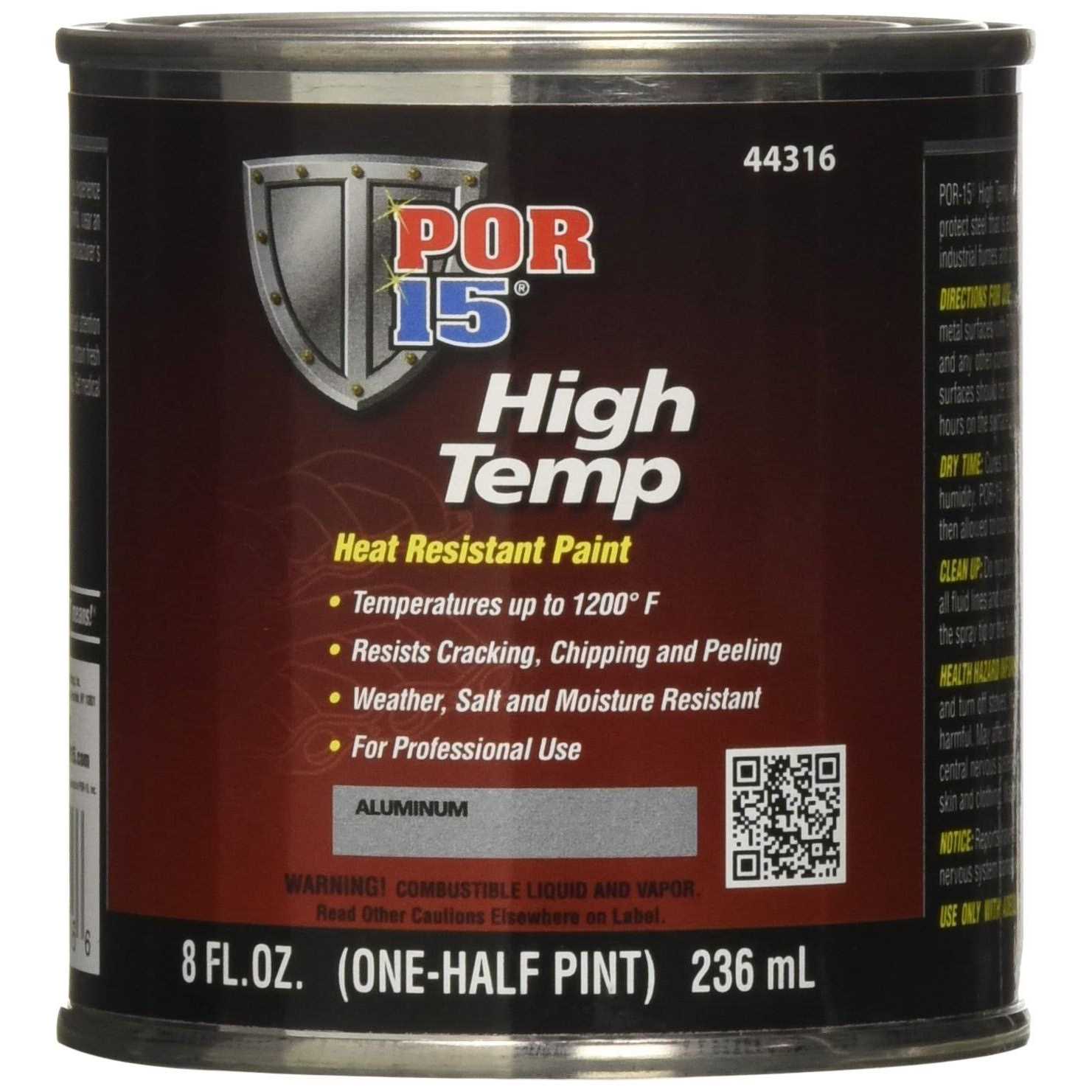 POR-15 High Temp paint is capable of withstanding extreme temperatures up to 1200 deg F / 648.8 deg C and will resist cracking chipping and peeling. It is also extremely weather salt and moisture resistant. POR-15 High Temp is the most uniform heat resistant coating available anywhere and will maintain rich brilliant colors without burning off or discoloring. Can be used on all cars domestic or foreign.